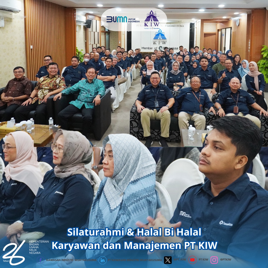 PT Kawasan Industri Wijayakusuma menggelar acara Silaturahmi dan Halal Bi Halal yang dihadiri oleh seluruh karyawan dan manajemen pada hari pertama kerja setelah libur panjang, Senin, 16 April 2024, di ruang Wijayakusuma. Acara tersebut diawali dengan sambutan dari Komisaris Utama PT KIW, Bapak Prasetyo Aribowo, serta Direktur Utama PT KIW, Bapak Ahmad Fauzie Nur.