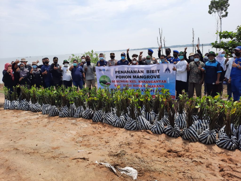 Andi Indriyanto selaku HC & GA Division Head bersama jajaran tim TJSL dan San Agitato Ganda Perkasa selaku Engineering Division Head bersama jajaran bersama Lurah Karanganyar dan Polsek Tugu bersama-sama melakukan penanaman mangrove di sepanjang sungai kelurahan Karanganyar.