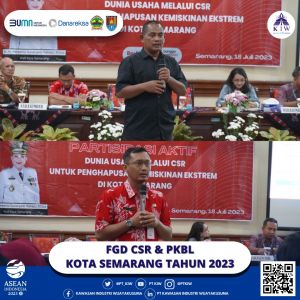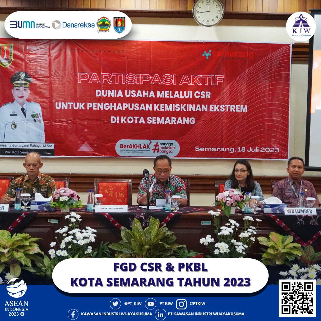 PT Kawasan Industri Wijayakusuma (KIW) menghadiri acara Focus Group Discussion CSR & PKBL Kota Semarang Tahun 2023, yang dilaksanakan hari Selasa Tanggal 18 Juli 2023 bertempat di Ruang Rapat Komisi C-D Gedung Moch Ikhsan Lantai 8 Kota Semarang. Kegiatan ini dihadiri oleh BUMN, BUMD, OPD dan Swasta yang sering terlibat dalam kegiatan CSR atau TJSL.