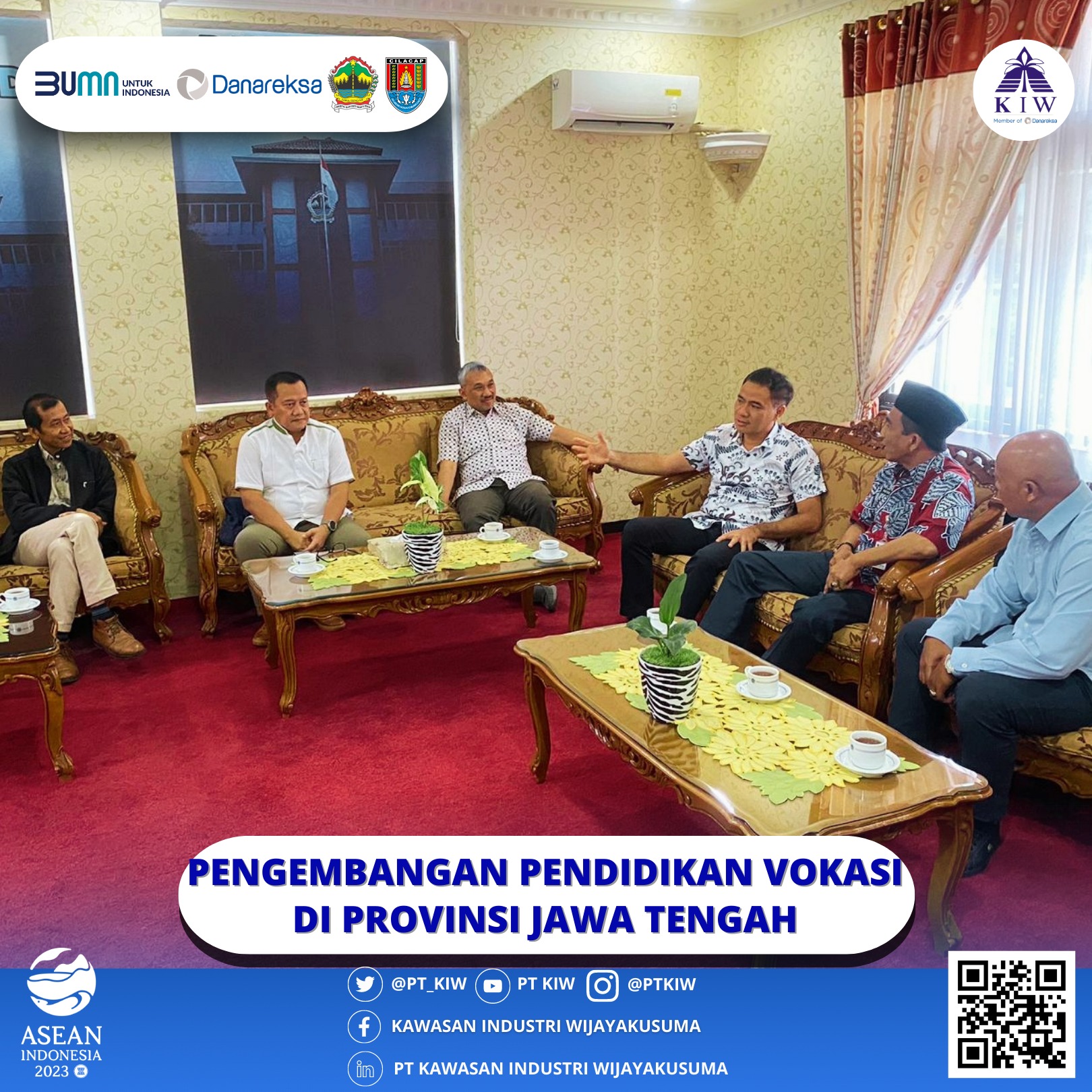 PT Kawasan Industri Wijayakusuma (KIW), sebagai pengembang dan pengelola kawasan industri yang juga merupakan anggota Himpunan Kawasan Industri (HKI) Jawa Tengah, telah diundang dan menghadiri rapat dengan Dinas Pendidikan dan Kebudayaan Jawa Tengah pada Jumat, 26 Mei 2023. Rapat ini bertujuan untuk membahas Pengembangan Pendidikan Vokasi di Jawa Tengah, dan diselenggarakan di Kantor Dinas Pendidikan dan Kebudayaan yang terletak di Jalan Pemuda, Kota Semarang.
