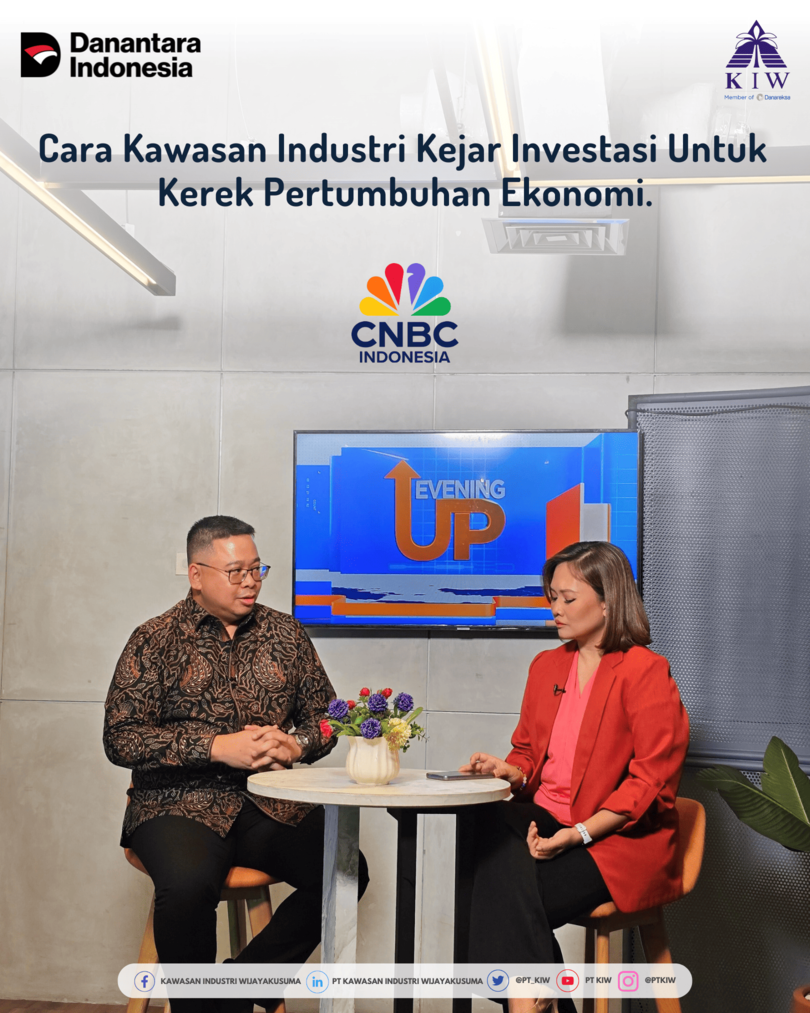 Direktur Utama PT Kawasan Industri Wijayakusuma (KIW), Ahmad Fauzie Nur, menjadi narasumber dalam program “Evening Up” yang ditayangkan oleh CNBC Indonesia dengan tema “Cara Kawasan Industri Kejar Investasi Untuk Kerek Pertumbuhan Ekonomi”.