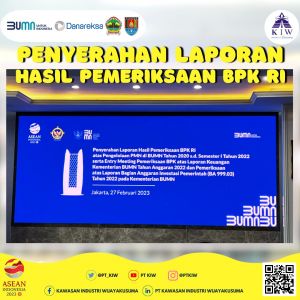 Kegiatan ini dilaksanakan pada hari Senin tanggal 27 Februari 2023 di ruang Rapat Lantai 21 Gedung Kementerian BUMN. Kegiatan ini dihadiri langsung oleh Menteri BUMN Bapak Erick Thohir beserta jajaran, Anggota VII BPK RI Bapak Hendra Susanto, Tortama VII BPK RI Bapak Novy G. A. Pelenkahu, 17 BUMN dan anak perusahaan termasuk PT KIW.
