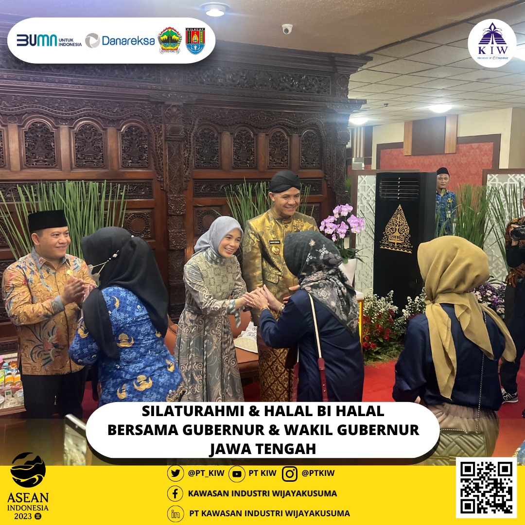 PT Kawasan Industri Wijayakusuma (KIW) yang diwakili oleh Head of Corporate Secretary, Ibu Kuniyanti dan tim, menghadiri acara silaturahmi dengan Gubernur Jawa Tengah Bapak H. Ganjar Pranowo, S.H, M.IP dan Wakil Gubernur Jawa Tengah Bapak H. Taj Yasin Maimoen setelah momen Idul Fitri 1444 H. Kegiatan silaturahmi ini dilaksanakan pada hari Selasa, tanggal 02 Mei 2023, bertempat di Kantor Gubernur Jawa Tengah. Acara ini dihadiri oleh sejumlah tamu undangan, termasuk seluruh Bupati/Walikota Jawa Tengah, pimpinan OPD Provinsi Jawa Tengah (pejabat struktural/setara), tokoh lintas agama, rektor PTN/PTS, pimpinan BUMN/BUMD, serta pimpinan instansi vertikal.