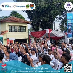 Direktur Keuangan dan Manajemen Risiko PT KIW, Bapak Riki Indrianto, serta jajaran direksi dari PT KITB turut hadir di kegiatan jalan sehat di Kendal dan ikut mendukung kegiatan ini.