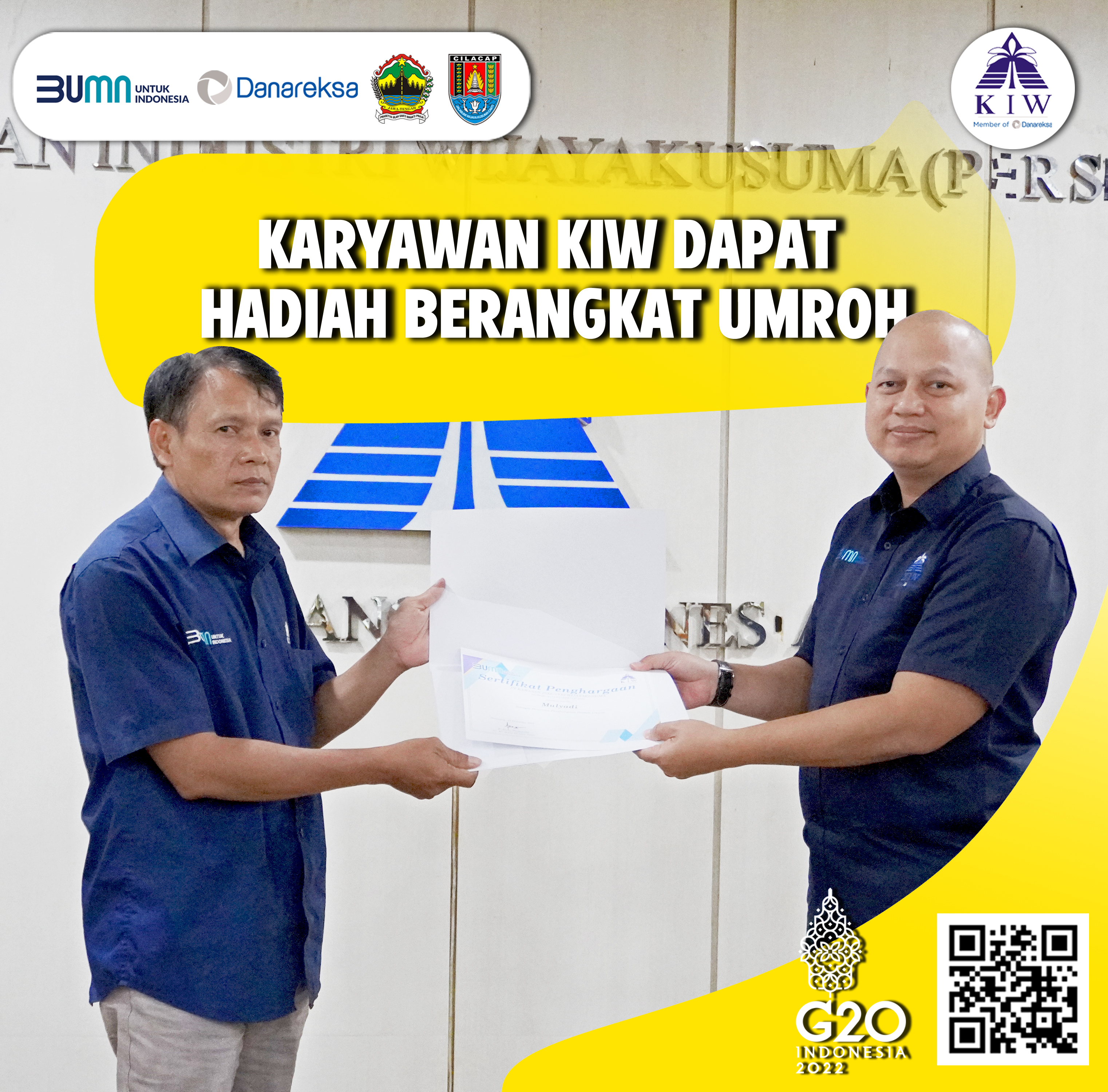 Selasa, 27 Desember 2022 PT KIW melaksanakan kegiatan Pelepasan Umroh untuk karyawan yang akan berangkat ke tanah suci Mekkah pada tanggal 31 Desember 2022. Pemberian hadiah Umroh gratis ini merupakan program kerja rutin yang dilakukan oleh PT KIW untuk karyawan dengan masa jabatan 5 tahun mendekati masa pensiun.