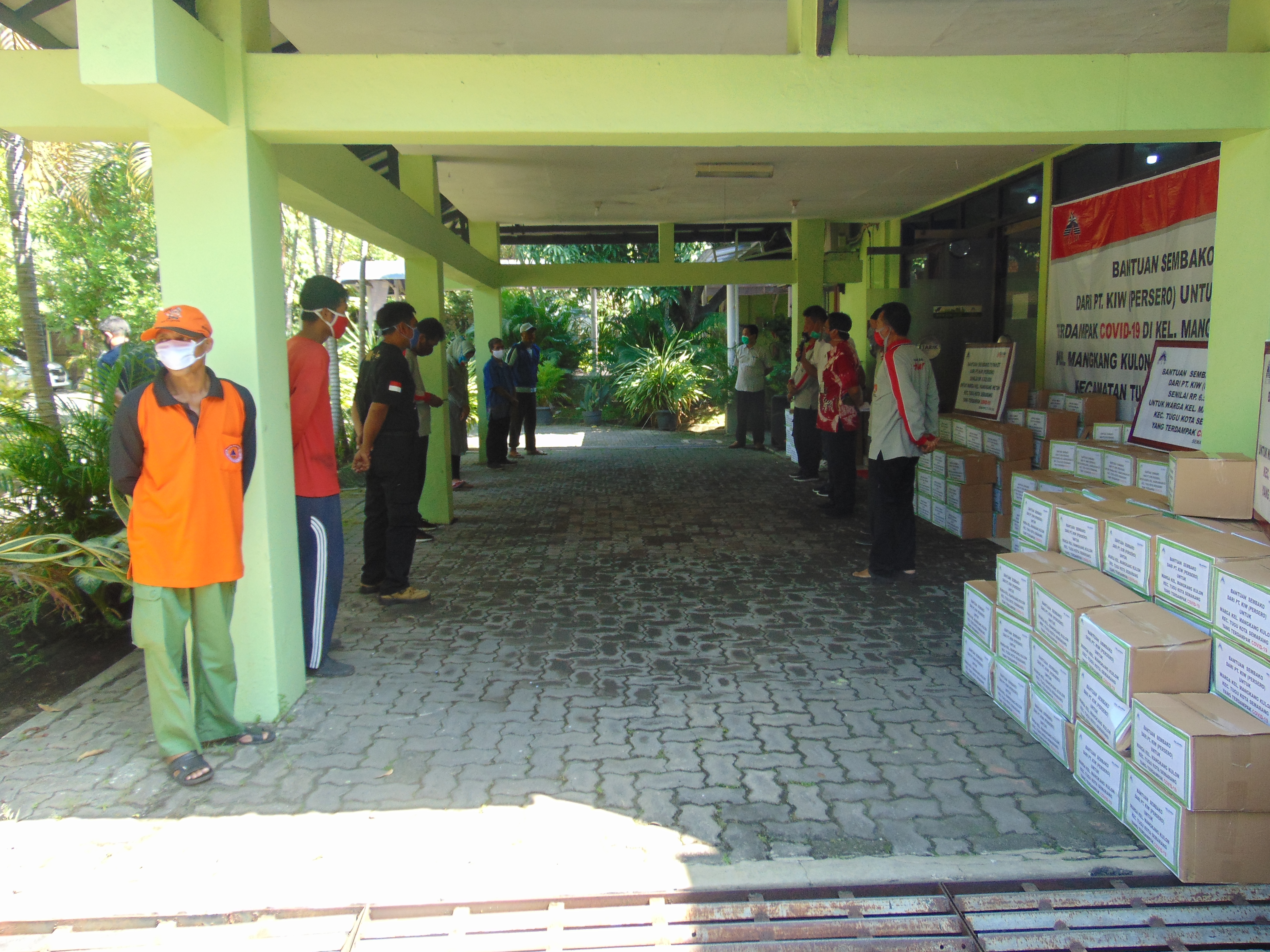 Gambar 2. Penyerahan Bantuan Paket Sembako secara simbolis kepada Lurah Mangunharjo