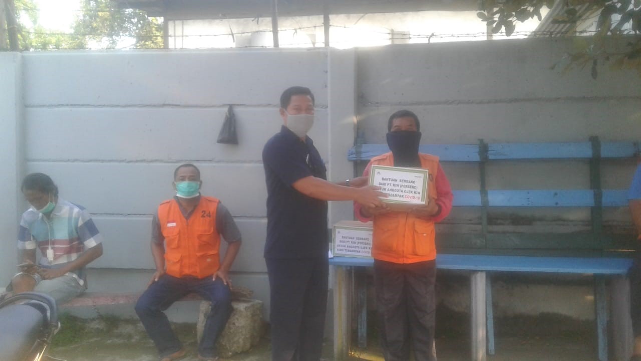 Gambar 8. Penyerahan Bantuan Paket Sembako ke Ojek di Lingkungan Kawasan Industri Wijayakusuma