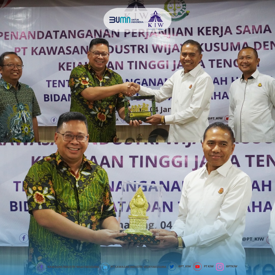 PT Kawasan Industri Wijayakusuma (KIW) pada hari Kamis, tanggal 4 Januari 2024, telah melaksanakan Penandatanganan Perjanjian Kerja Sama dengan Kejaksaan Tinggi Jawa Tengah terkait Penanganan Masalah Hukum di Bidang Perdata dan Tata Usaha Negara. Acara ini digelar di ruang rapat PT KIW dengan suasana yang penuh hikmat dan akrab.