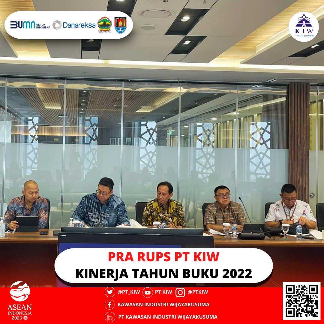 PT Kawasan Industri Wijayakusuma melaksanakan Pra-Rapat Umum Pemegang Saham (Pra-RUPS) untuk pengesahan laporan keuangan audited tahun buku 2022. Rapat ini dilaksanakan pada hari Kamis, 22 Juni 2023 bertempat di Menara Danareksa Ruang Rapat Jakarta lantai 21, Jakarta, yang dihadiri oleh Pemegang Saham PT Danareksa (Persero), Provinsi Jawa Tengah dan Kabupaten Cilacap, Dewan Komisaris dan Direksi serta Manajemen PT KIW.