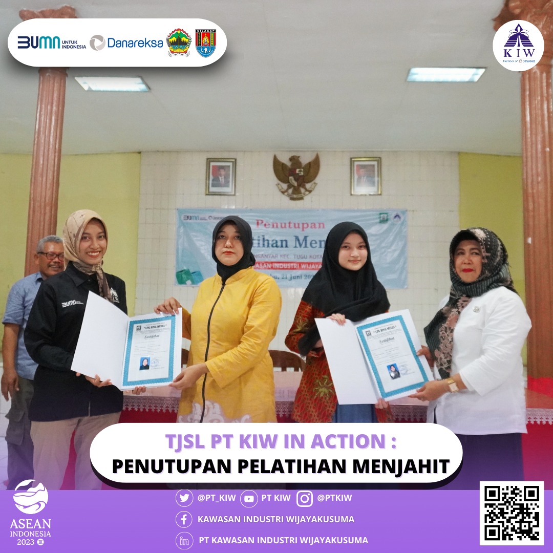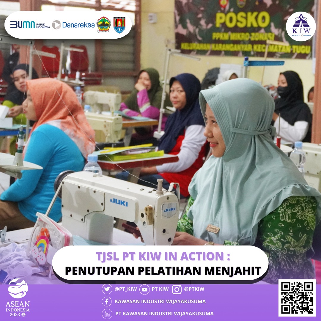 PT Kawasan Industri Wijayakusuma (KIW) mengadakan acara penutupan pelatihan menjahit di Balai Pertemuan Kelurahan Karanganyar, Kecamatan Tugu, Kota Semarang pada tanggal 21 Juni 2023. Pelatihan ini merupakan salah satu program kerja PT KIW dalam pilar ekonomi, tepatnya TPB 8 (Pekerjaan Layak dan Pertumbuhan Ekonomi). Kegiatan pelatihan ini telah dimulai sejak tanggal 29 Mei 2023 dan menjadi kolaborasi antara PT KIW dan LPK Bina Mulia sebagai mitra binaan.