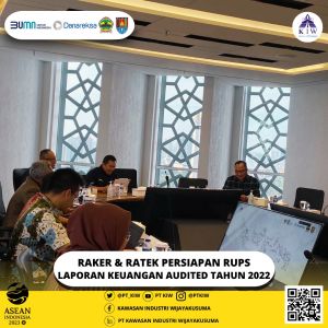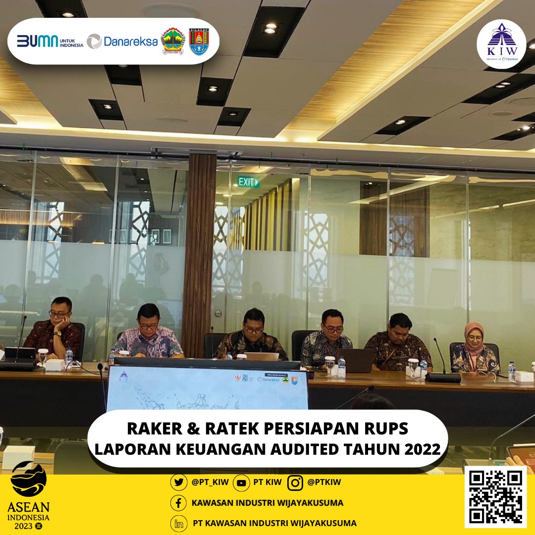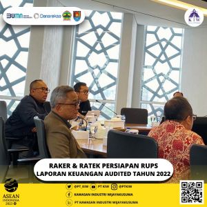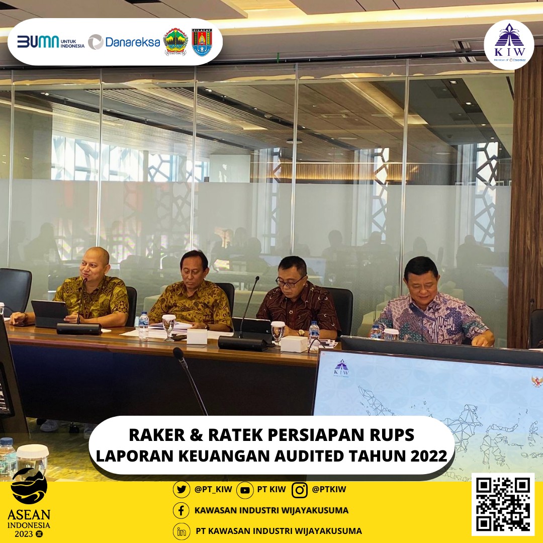 Agendanya adalah sebagai berikut : 1. Rapat Kerja – Pembahasan Progress Kinerja PT Kawasan Industri Wijayakusuma dalam rangka Pencapaian RKAP dan KPI Tahun 2023 2. Rapat Teknis – Persiapan RUPS Laporan Keuangan Audited Tahun 2022Dengan dilaksanakannya Rapat Kerja dan Rapat Teknis ini, diharapkan PT KIW dapat mengoptimalkan kinerja dan memperkuat posisinya di sektor pengembangan dan pengelolaan kawasan industri. Semoga rapat ini menjadi langkah awal yang positif bagi PT KIW dalam mencapai tujuan jangka panjang perusahaan dan memberikan manfaat yang lebih besar bagi pemangku kepentingan perusahaan.