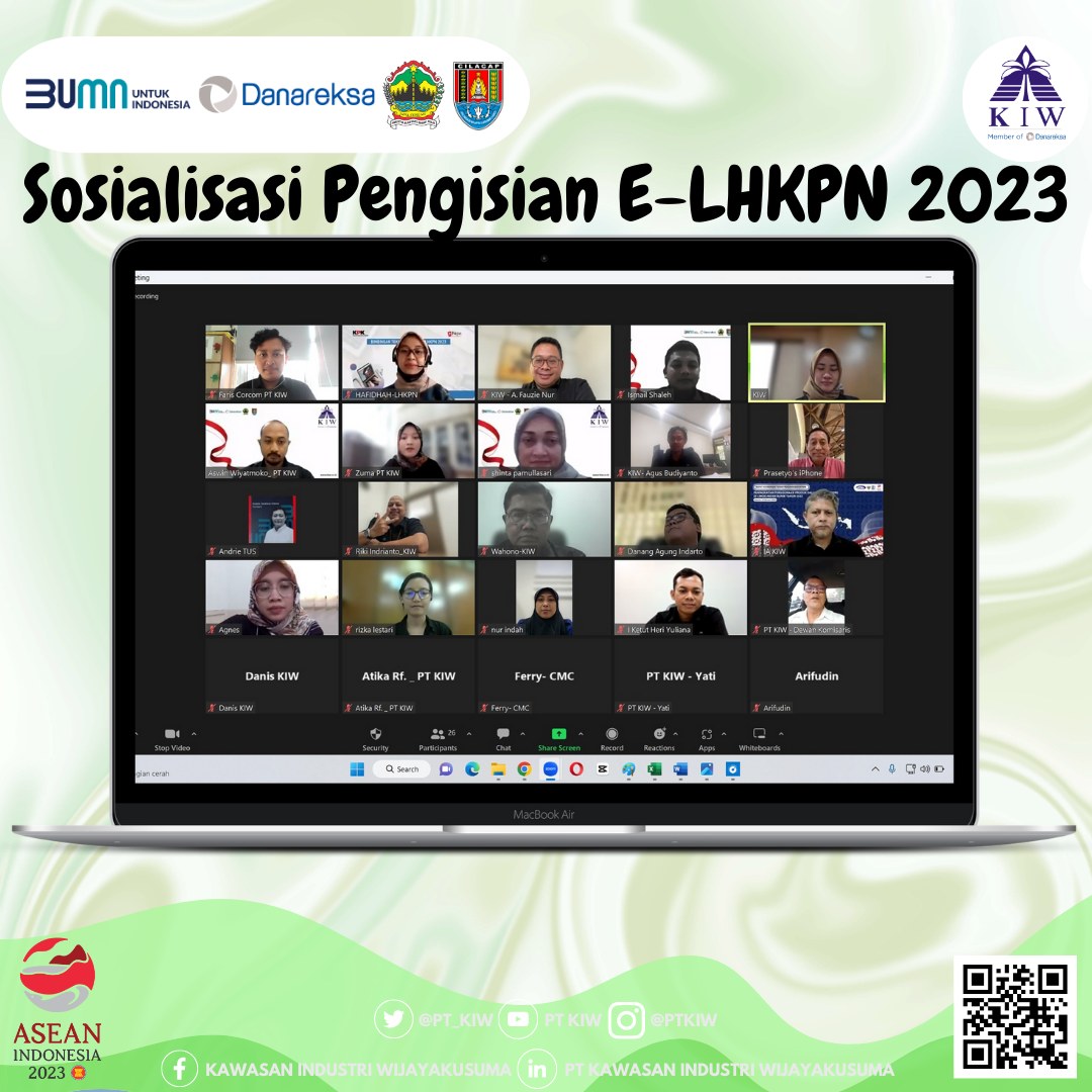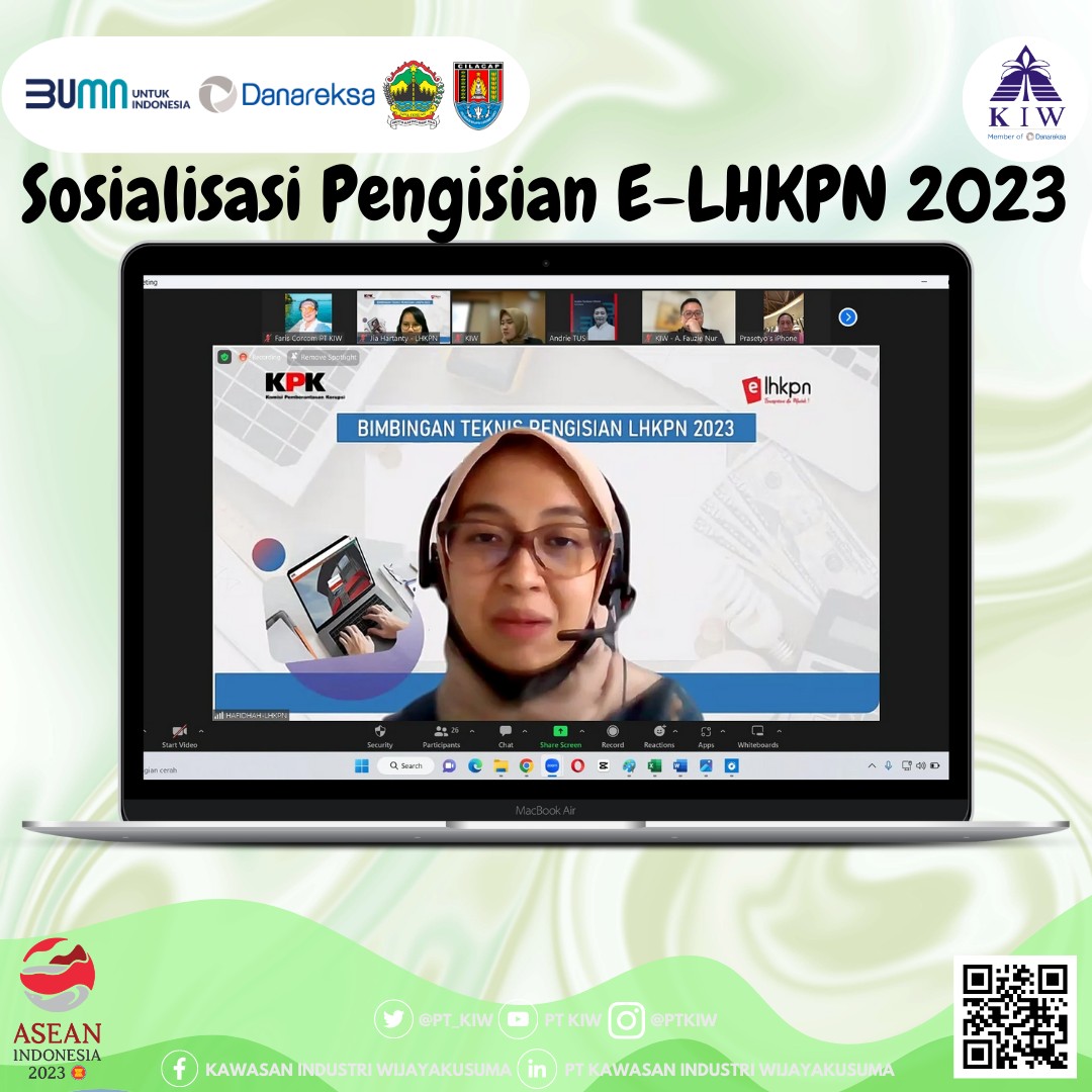 PT Kawasan Industri Wijayakusuma (KIW) Semarang mengadakan acara sosialisasi bagi seluruh karyawannya pada hari Rabu, 08 Maret 2023. Acara tersebut dilaksanakan melalui platform Zoom meeting dan membahas mengenai pengisian e-LHKPN secara online. Narasumber yang dihadirkan dalam acara tersebut adalah ibu Hafidhah Rifqiah, seorang Spesialis pendaftaran dan pemeriksaan LHKPN dari Komisi Pemberantasan Korupsi (KPK).