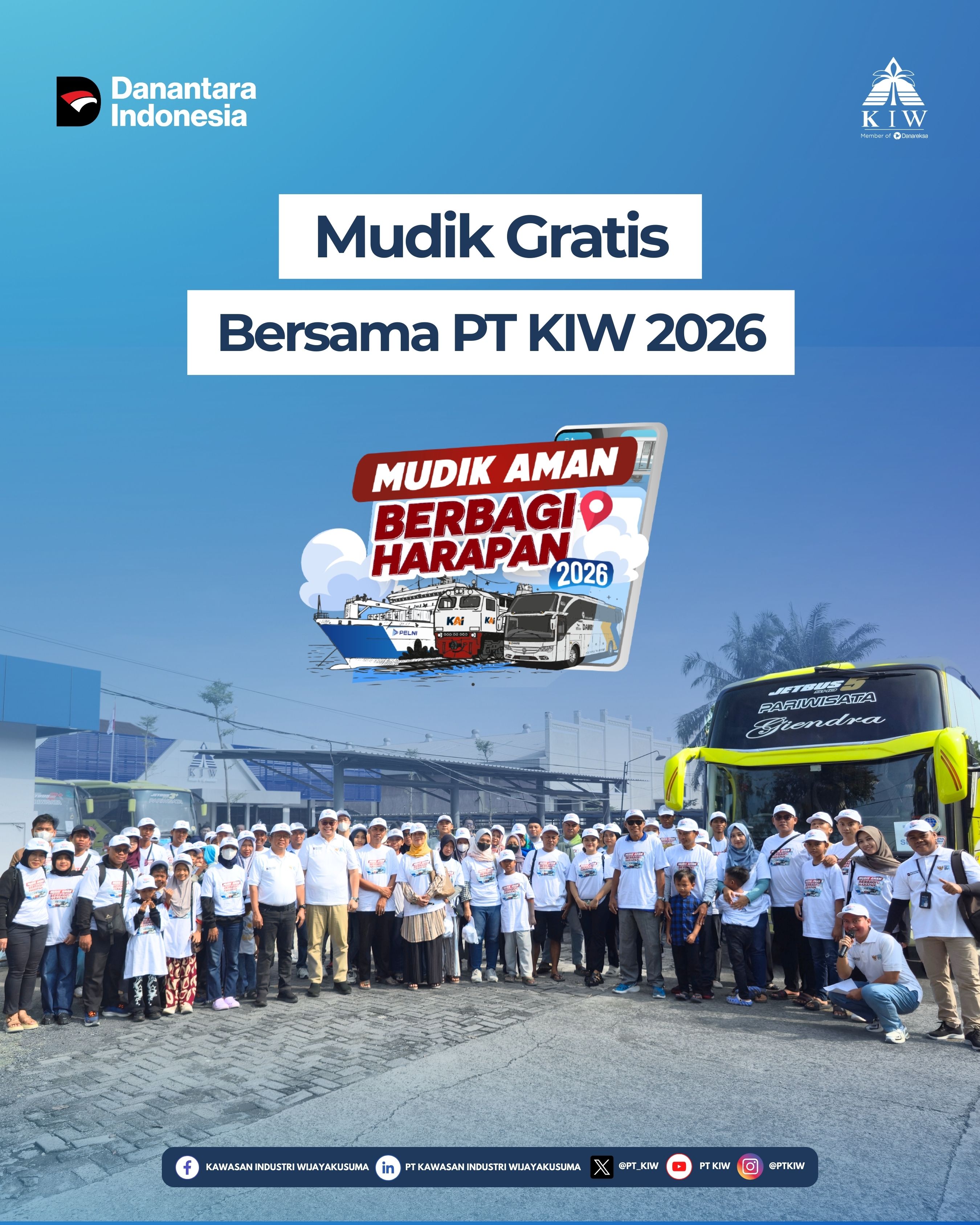 Semarang, 17 Maret 2026 – PT Kawasan Industri Wijayakusuma (KIW) sebagai bagian dari Holding BUMN Danareksa kembali menunjukkan komitmennya dalam mendukung kelancaran arus mudik Lebaran melalui penyelenggaraan Program Mudik Gratis Tahun 2026.