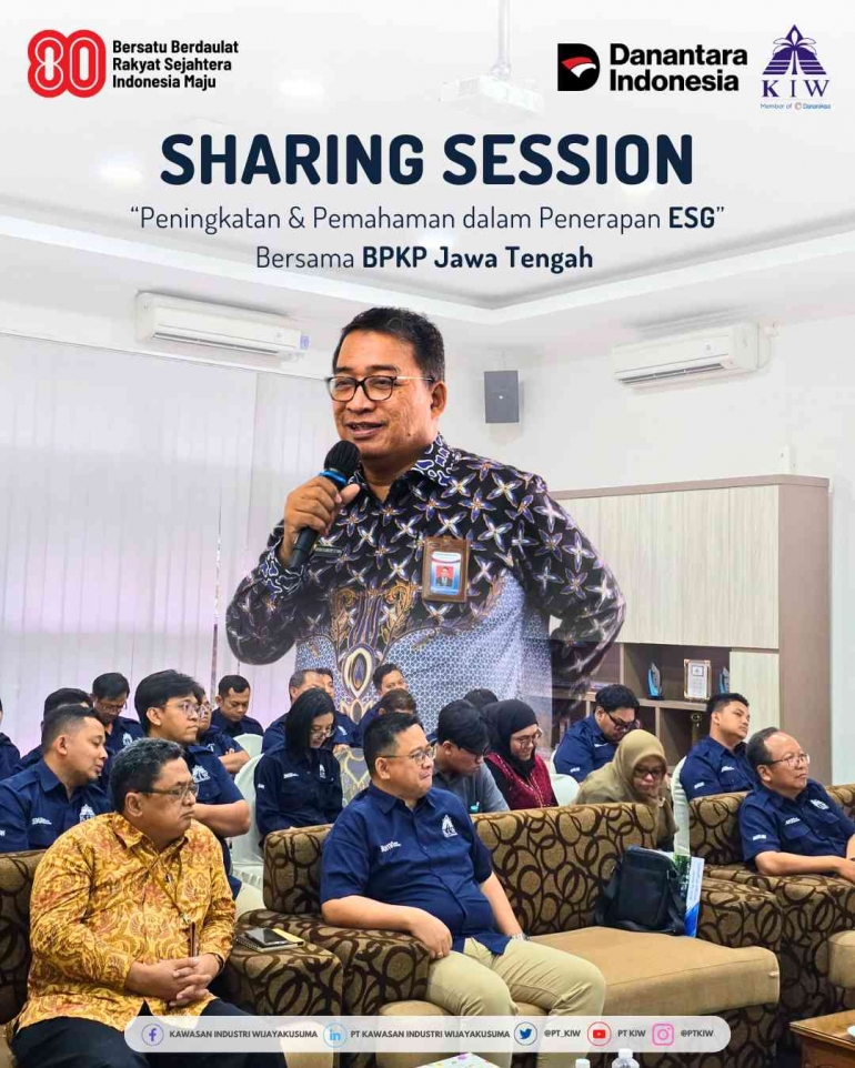 Semarang -- PT Kawasan Industri Wijayakusuma (KIW) telah menyelenggarakan kegiatan Sharing Session "Peningkatan & Pemahaman dalam Penerapan Environment, Social, and Governance (ESG)" pada Rabu (13/08) di Ruang Opsroom Lantai 2 Kantor PT KIW.