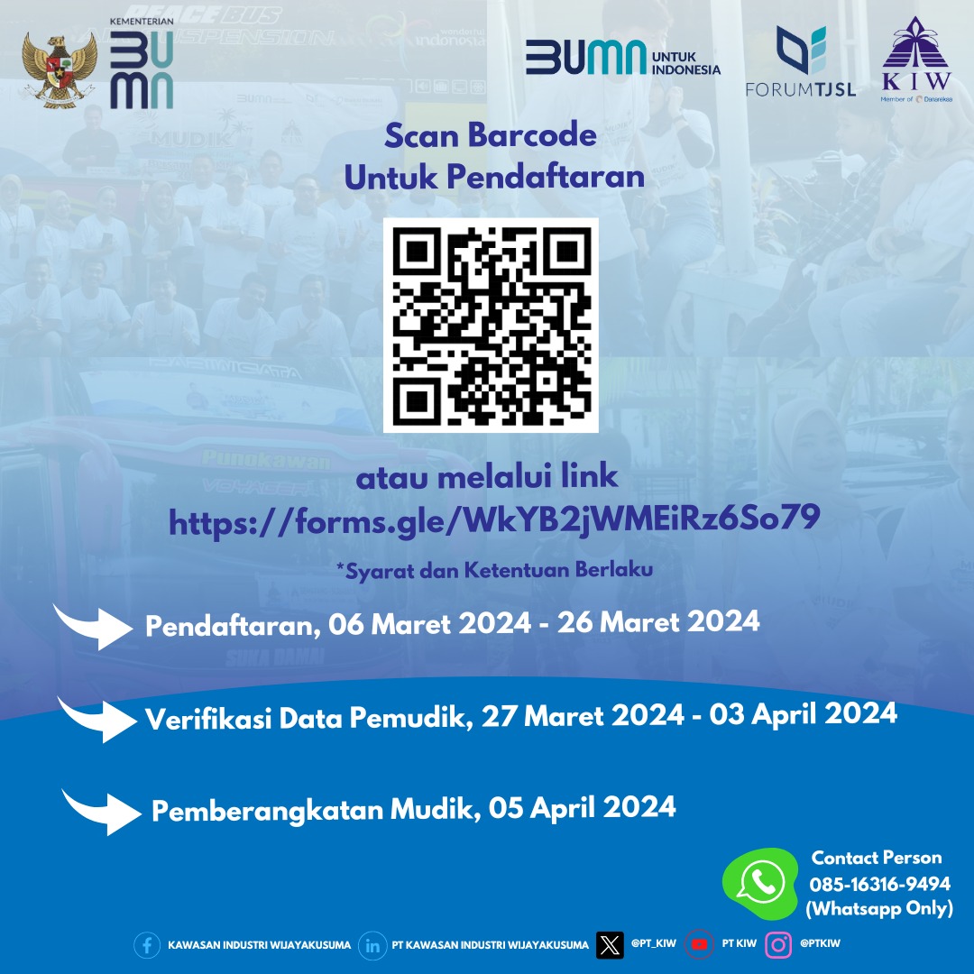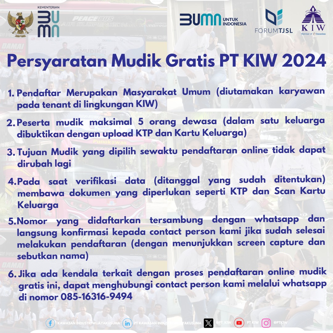 Jika ada pertanyaan atau kendala, jangan ragu untuk hubungi Contact Person Mudik Asyik KIW di Nomor 085-16316-9494 (Whatsapp Only).