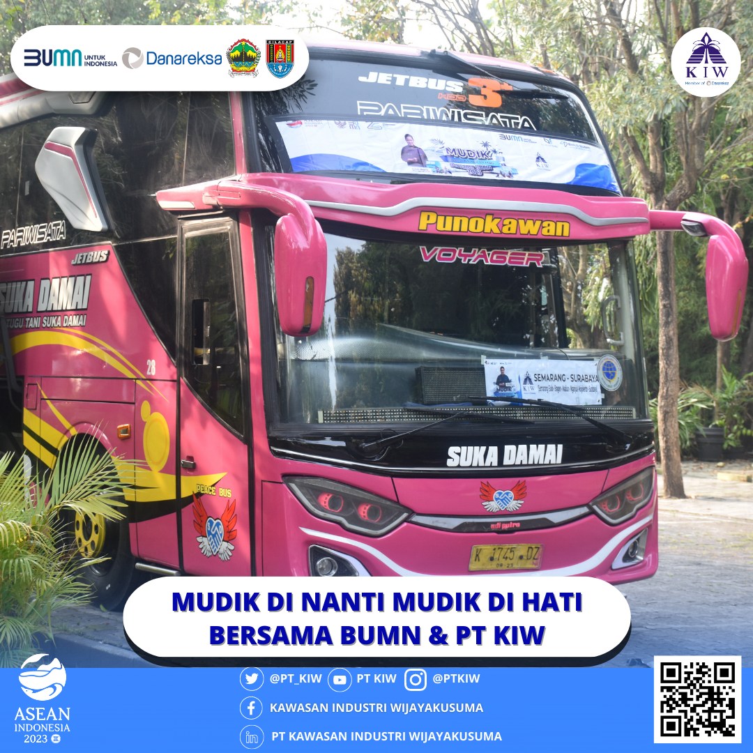 PT Kawasan Industri Wijayakusuma (KIW) telah melaksanakan kegiatan "Mudik Dinanti Mudik Di Hati Bersama BUMN" pada hari Selasa tanggal 18 April 2023. Kegiatan ini bertujuan untuk memberangkatkan para peserta mudik secara gratis menggunakan moda transportasi bus dengan tujuan Semarang-Solo-Sragen-Madiun-Nganjuk-Mojokerjo-Surabaya.