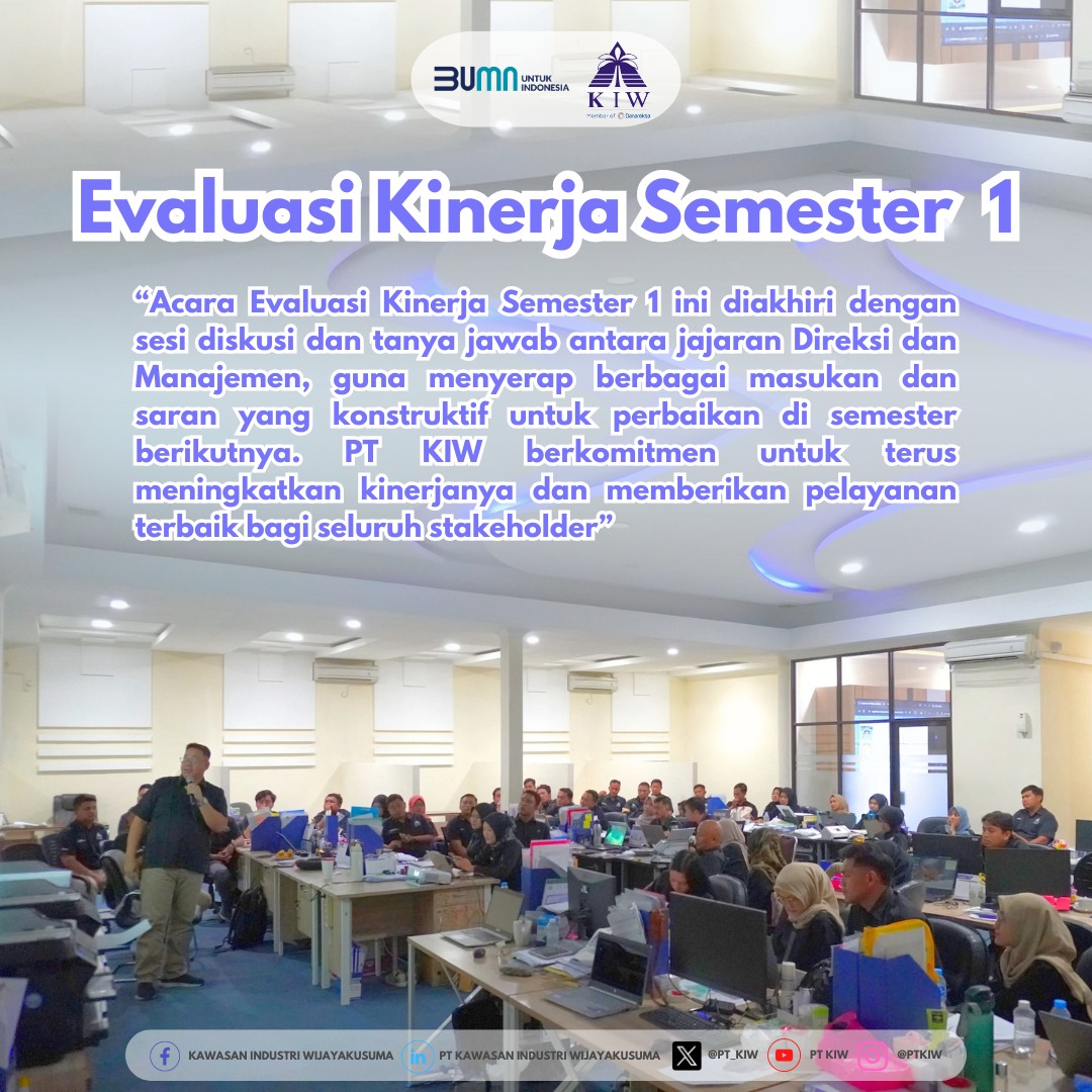 Acara Evaluasi Kinerja Semester 1 ini diakhiri dengan sesi diskusi dan tanya jawab antara jajaran Direksi dan Manajemen, guna menyerap berbagai masukan dan saran yang konstruktif untuk perbaikan di semester berikutnya. PT KIW berkomitmen untuk terus meningkatkan kinerjanya dan memberikan pelayanan terbaik bagi seluruh stakeholder.