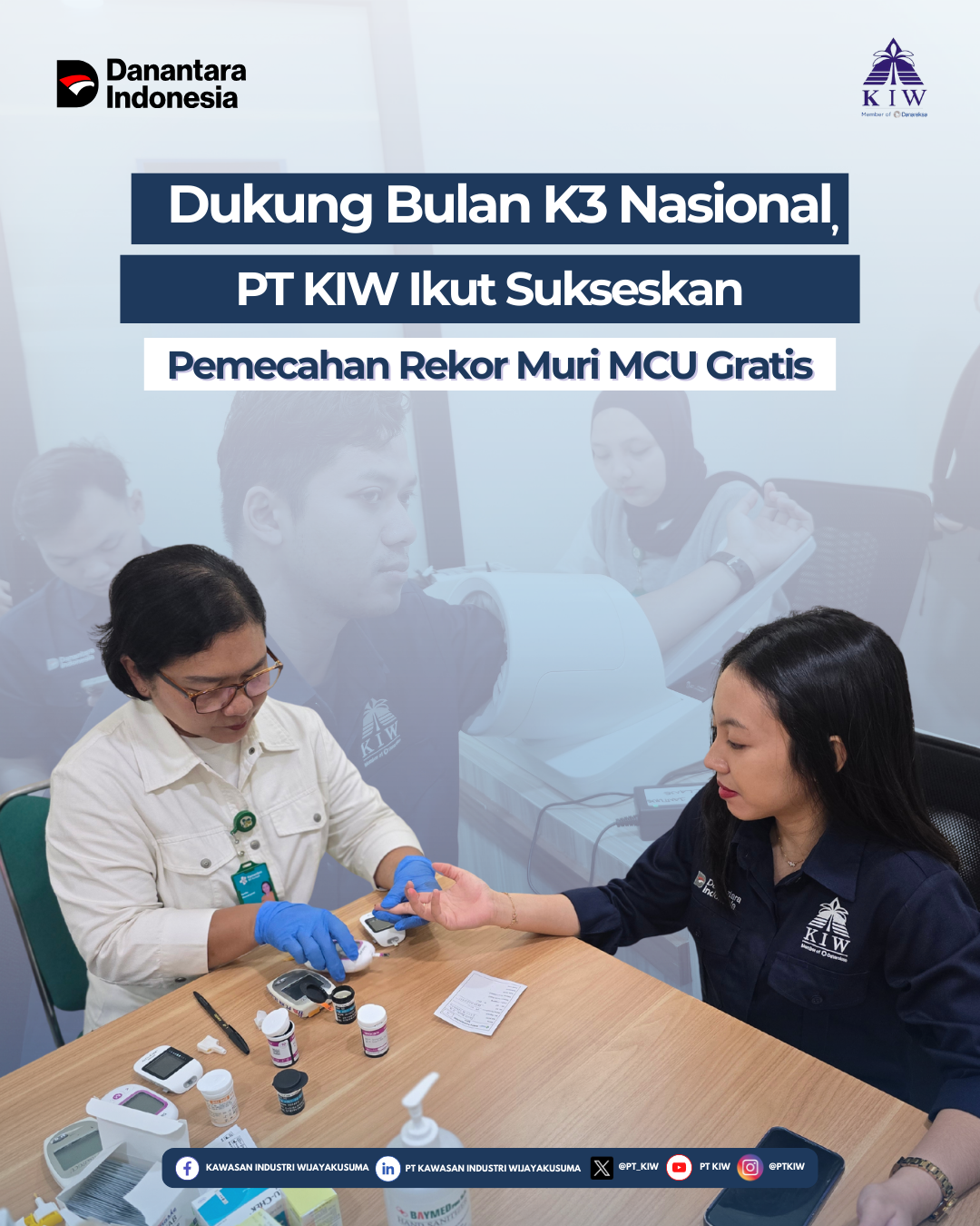 PT Kawasan Industri Wijayakusuma (KIW) berpartisipasi dalam kegiatan Pemeriksaan Kesehatan Gratis (Medical Check Up/MCU) yang diselenggarakan dalam rangka memperingati Bulan Keselamatan dan Kesehatan Kerja (K3) Nasional. Kegiatan ini merupakan bagian dari rencana pemecahan Rekor Museum Rekor-Dunia Indonesia (MURI) dan telah dilaksanakan pada 27 Januari di lingkungan PT KIW.
