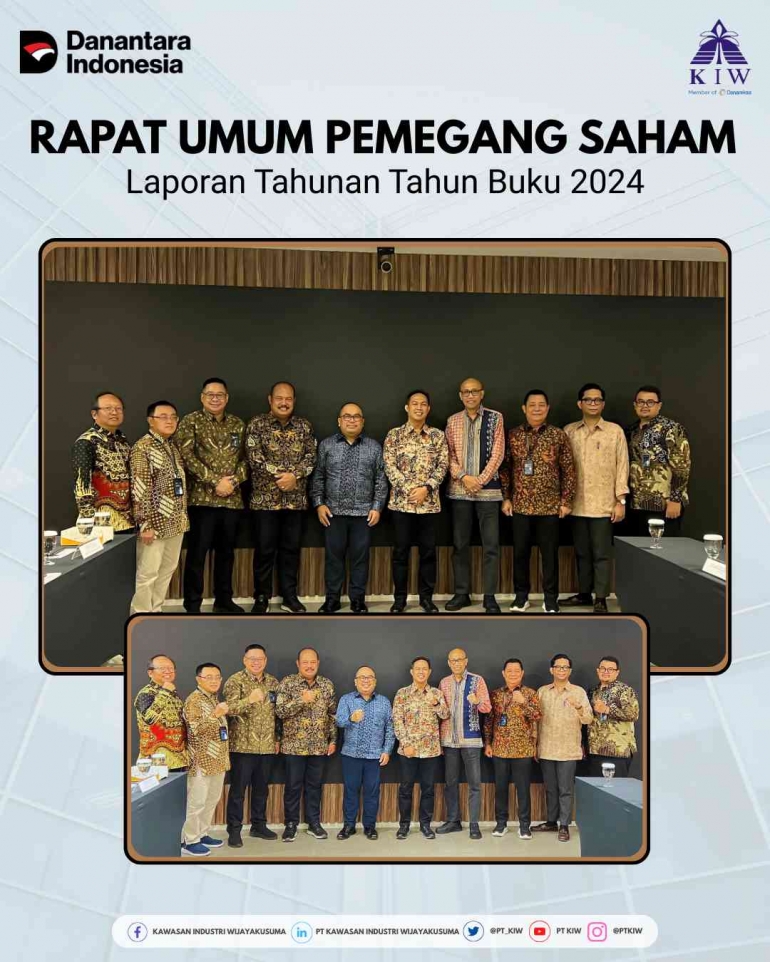 Jakarta -- PT Kawasan Industri Wijayakusuma (KIW) telah menyelenggarakan Rapat Umum Pemegang Saham (RUPS) untuk menyampaikan dan memperoleh persetujuan atas laporan keuangan audited tahun buku 2024. Kegiatan ini dilaksanakan pada hari Rabu, 25 Juni 2025, bertempat di Gedung Menara Danareksa, Jakarta.