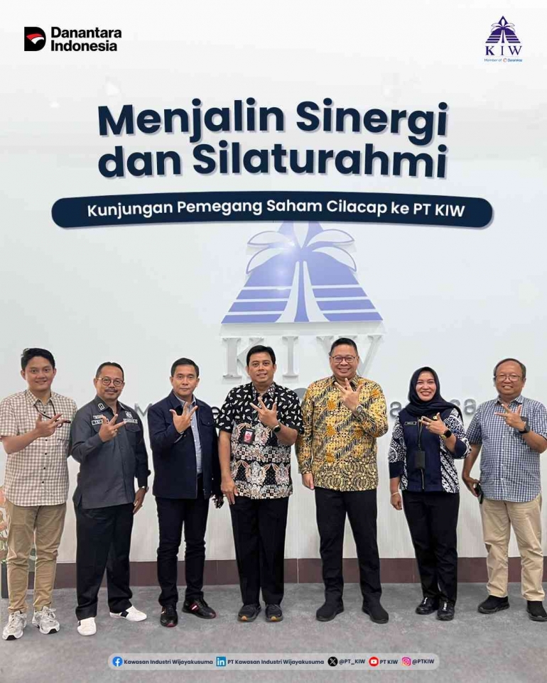 Semarang --- PT Kawasan Industri Wijayakusuma (KIW) menyambut kunjungan dari perwakilan Pemegang Saham (PS) Cilacap pada Rabu, 22 Oktober 2025, bertempat di Ruang Opsroom PT KIW. Kunjungan tersebut dilaksanakan dalam rangka menjalin silaturahmi serta mempererat hubungan kelembagaan antar pemegang saham, sekaligus sebagai forum untuk berbagi informasi dan memperkuat sinergi dalam pengembangan kawasan industri di Jawa Tengah. Rombongan dari PS Cilacap terdiri atas Bapak Ferry Adhi Dharma, S.T., M.Si., selaku Asisten Ekonomi dan Pembangunan, serta Ibu Ruji Emilia, S.Sos., M.M., Ketua Tim Kerja Sumber Daya Alam. Kehadiran mereka disambut langsung oleh jajaran Direksi PT KIW, yaitu Direktur Utama, Bapak Ahmad Fauzie Nur, dan Direktur Operasional merangkap Plt. Direktur Keuangan dan Manajemen Risiko, Bapak Sugeng Riyanto.