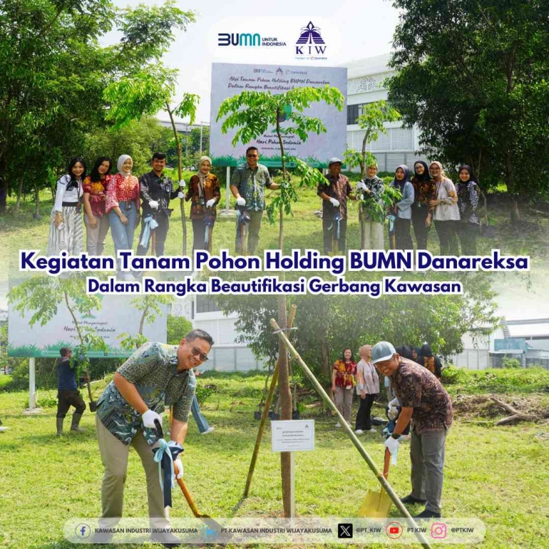 Semarang, 21 November 2024 -- Dalam rangka memperingati Hari Pohon Sedunia, PT Kawasan Industri Wijayakusuma (KIW), yang merupakan bagian dari Holding BUMN Danareksa, melaksanakan kegiatan penanaman pohon di sekitar gerbang kawasan industri dan beberapa titik strategis lainnya di kawasan tersebut. Kegiatan penanaman 3642 bibit pohon ini dilaksanakan secara serentak oleh seluruh anggota Holding BUMN Danareksa sebagai wujud nyata komitmen perusahaan dalam mendukung program beautifikasi kawasan industri.