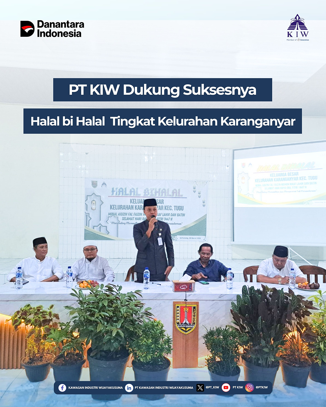 PT Kawasan Industri Wijayakusuma (KIW) kembali menunjukkan komitmennya dalam mendukung kegiatan sosial kemasyarakatan melalui partisipasi pada kegiatan Halal bi Halal Tingkat Kelurahan Karanganyar yang telah dilaksanakan pada Senin, 30 Maret 2026, bertempat di Balai Kelurahan Karanganyar.