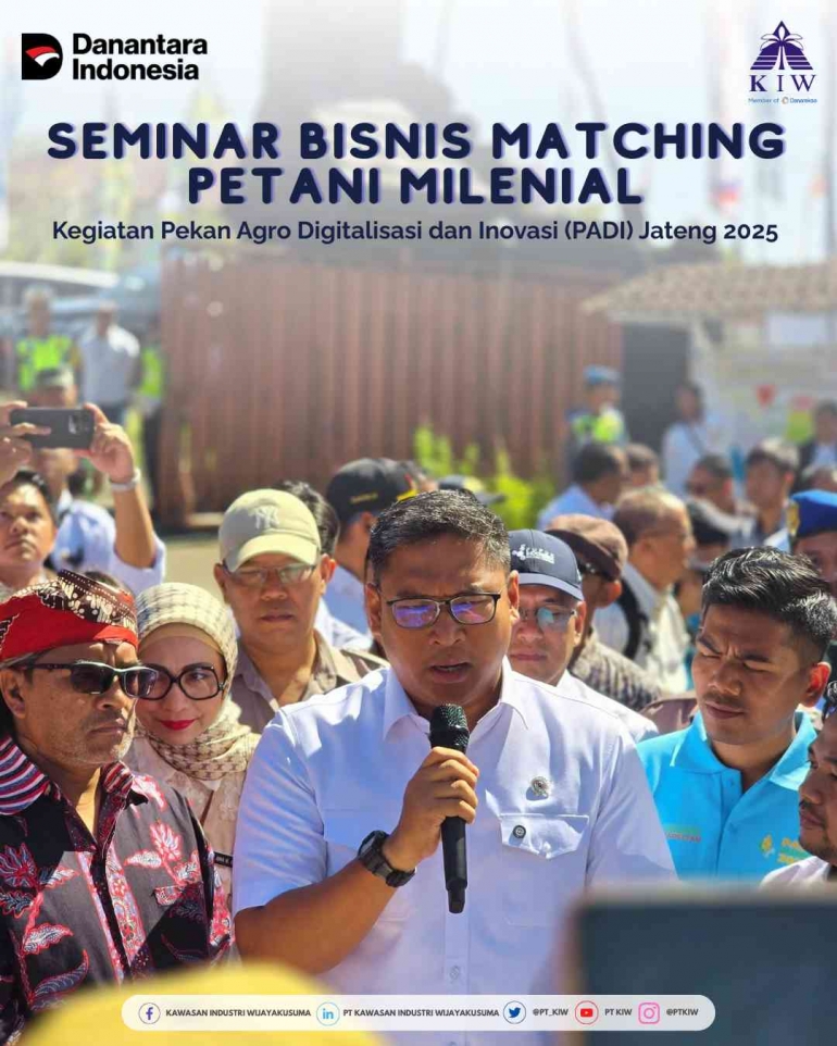 Magelang, 20 Juli 2025 --- PT Kawasan Industri Wijayakusuma (KIW), sebagai anggota Holding BUMN Danareksa, menunjukkan dukungannya terhadap pengembangan sektor pertanian melalui partisipasinya dalam kegiatan Pelepasan Ekspor dan Business Matching bertajuk Pekan Agro Digital & Inovasi (PADI JATENG 2025) yang digelar di Agro Center Soropadan, Kabupaten Magelang.