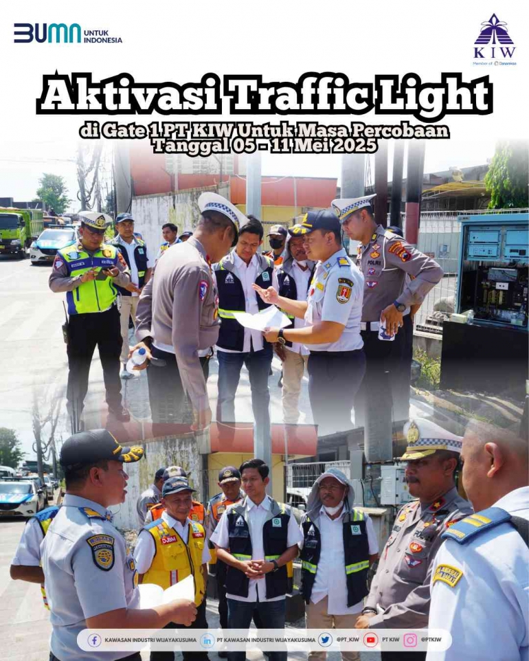 Semarang -- PT Kawasan Industri Wijayakusuma (KIW) terus menunjukkan komitmennya dalam meningkatkan aspek keselamatan dan kelancaran lalu lintas di wilayah operasionalnya. Pada hari Senin, 05 Mei 2025, telah dilaksanakan percobaan aktivasi Traffic Light di Gate I PT KIW sebagai bagian dari implementasi teknis rekomendasi Analisis Dampak Lalu Lintas (Andalalin).