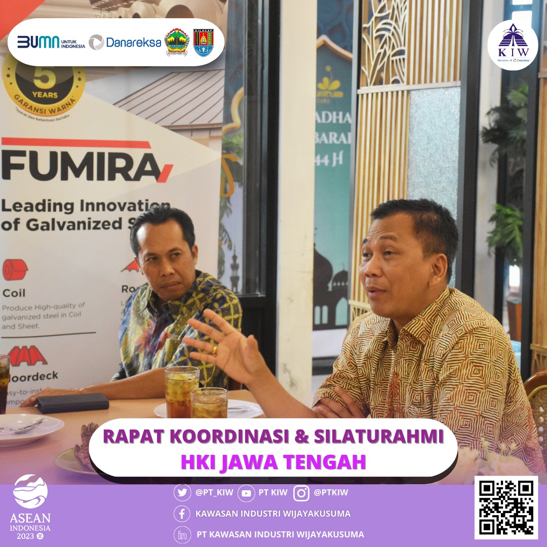 Himpunan Kawasan Industri (HKI) Jawa Tengah merupakan sebuah organisasi yang terdiri dari berbagai kawasan industri di Jawa Tengah yang bertujuan untuk meningkatkan kerjasama, koordinasi, dan sinergi antar anggotanya. PT Kawasan Industri Wijayakusuma (KIW) merupakan salah satu anggota HKI Jawa Tengah yang turut hadir dalam acara rapat koordinasi dan silaturahmi antar kawasan industri di Jawa Tengah. Acara ini dilaksanakan pada hari Selasa, tanggal 4 April 2023, dan bertempat di Resto Truntum Gama, Kota Semarang.