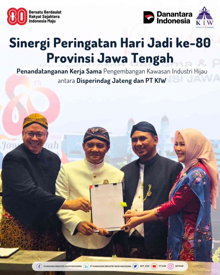 Sinergi Peringatan Hari Jadi ke-80 Jawa Tengah: Penandatanganan Kerja Sama Pengembangan Kawasan Industri Hijau antara Disperindag Jateng dan PT KIW