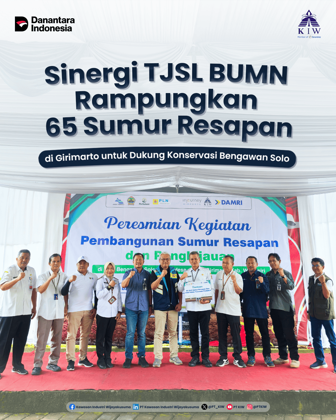 Wonogiri — Program kolaborasi Tanggung Jawab Sosial dan Lingkungan (TJSL) antara PT Kawasan Industri Wijayakusuma (KIW) dan sejumlah BUMN resmi diselesaikan pada awal Desember 2025. Program ini melibatkan Perum Jasa Tirta I, Perum Perhutani, PT PLN Indonesia Power, PT Angkasa Pura Indonesia, Perum Damri, serta Cabang Dinas Kehutanan XI Jawa Tengah dalam upaya memperkuat konservasi lingkungan di kawasan tangkapan air Sungai Bengawan Solo.