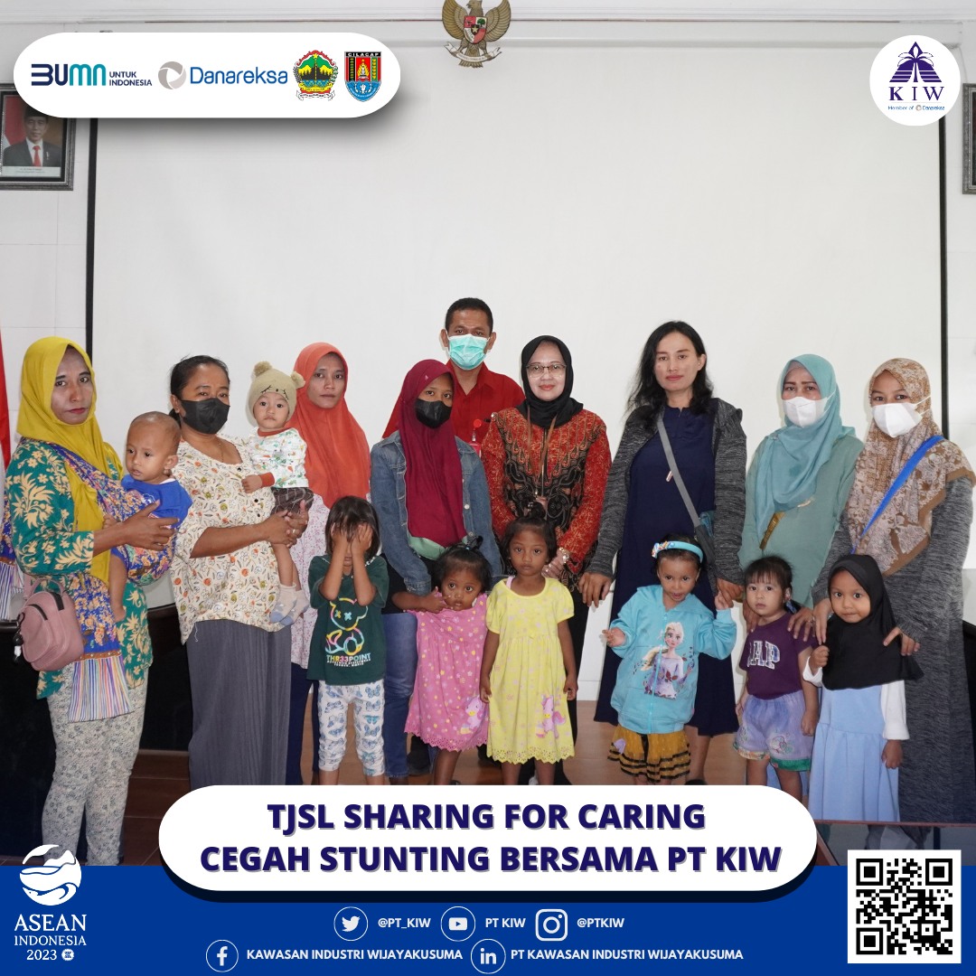 Tim TJSL PT Kawasan Industri Wijayakusuma (KIW) dalam kegiatan KIW Sharing for Caring pada hari Kamis, tanggal 13 Juli 2023 memberikan bantuan berupa paket sembako sehat untuk mendukung tumbuh kembang 73 anak yang terdata stunting, 51 anak yang terdata stunting di Puskesmas TambakAji dan 22 anak yang terdata stunting di Puskesmas Mangkang Kota Semarang. Bantuan ini diharapkan dapat mendukung tumbuh kembang mereka yang terhambat akibat kondisi stunting.