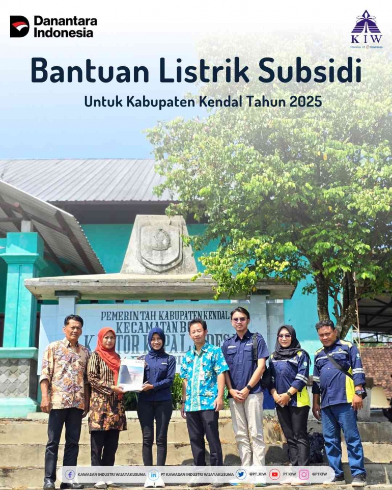 PT Kawasan Industri Wijayakusuma (KIW) melalui Tim Tanggung Jawab Sosial dan Lingkungan (TJSL) dan Internal Audit (IA) telah melaksanakan penyerahan Bantuan Listrik Subsidi 450 VA kepada masyarakat di Kabupaten Kendal, Jawa Tengah. Kegiatan ini secara simbolis dilaksanakan pada tanggal 29 Juli 2025 dan dihadiri oleh perwakilan dari Dinas Energi dan Sumber Daya Mineral (ESDM) Provinsi Jawa Tengah.