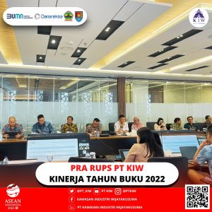 PT Kawasan Industri Wijayakusuma melaksanakan Pra-Rapat Umum Pemegang Saham (Pra-RUPS) untuk pengesahan laporan keuangan audited tahun buku 2022. Rapat ini dilaksanakan pada hari Kamis, 22 Juni 2023 bertempat di Menara Danareksa Ruang Rapat Jakarta lantai 21, Jakarta, yang dihadiri oleh Pemegang Saham PT Danareksa (Persero), Provinsi Jawa Tengah dan Kabupaten Cilacap, Dewan Komisaris dan Direksi serta Manajemen PT KIW.