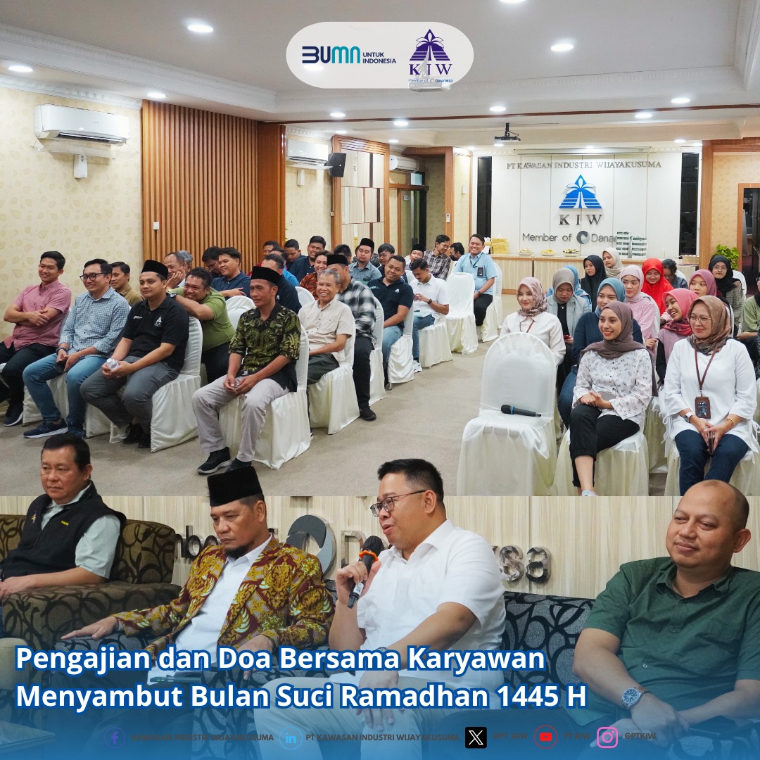 Jum’at, 08 Maret 2024, PT Kawasan Industri Wijayakusuma (KIW) menggelar acara Pengajian dan Doa Bersama sebagai bagian dari persiapan menyambut Bulan Suci Ramadhan 1445 H. Acara yang dilangsungkan di ruang rapat Wijayakusuma ini turut dihadiri oleh seluruh karyawan, yang menandai akhir pekan sebelum libur panjang.