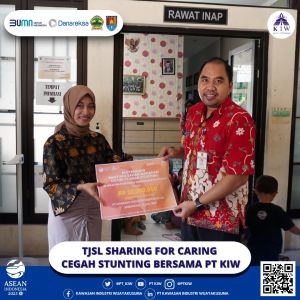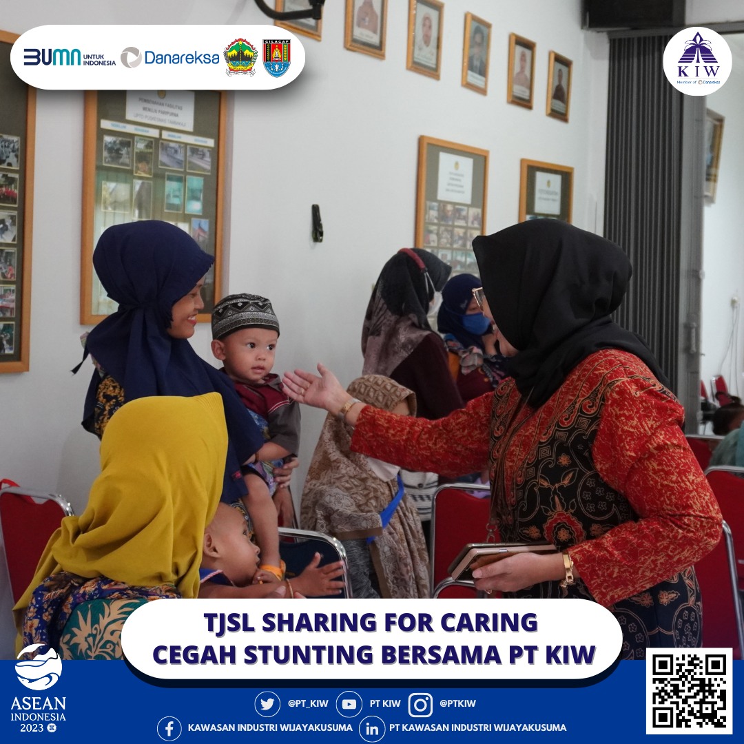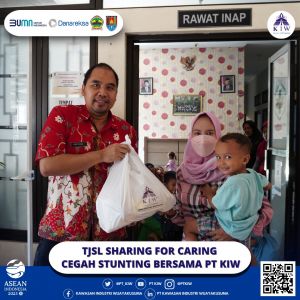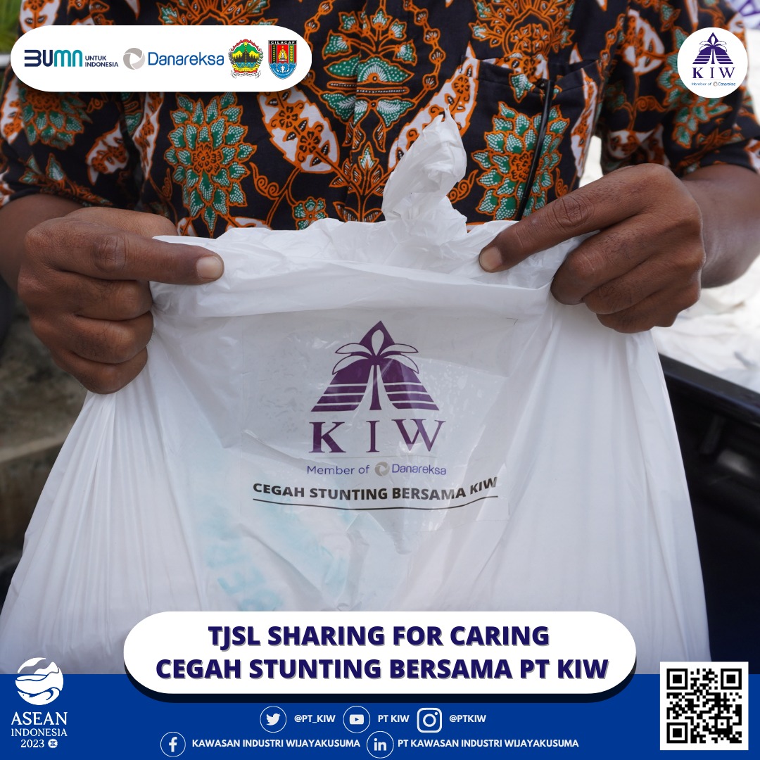 Tim TJSL PT Kawasan Industri Wijayakusuma (KIW) dalam kegiatan KIW Sharing for Caring pada hari Kamis, tanggal 13 Juli 2023 memberikan bantuan berupa paket sembako sehat untuk mendukung tumbuh kembang 73 anak yang terdata stunting, 51 anak yang terdata stunting di Puskesmas TambakAji dan 22 anak yang terdata stunting di Puskesmas Mangkang Kota Semarang. Bantuan ini diharapkan dapat mendukung tumbuh kembang mereka yang terhambat akibat kondisi stunting.