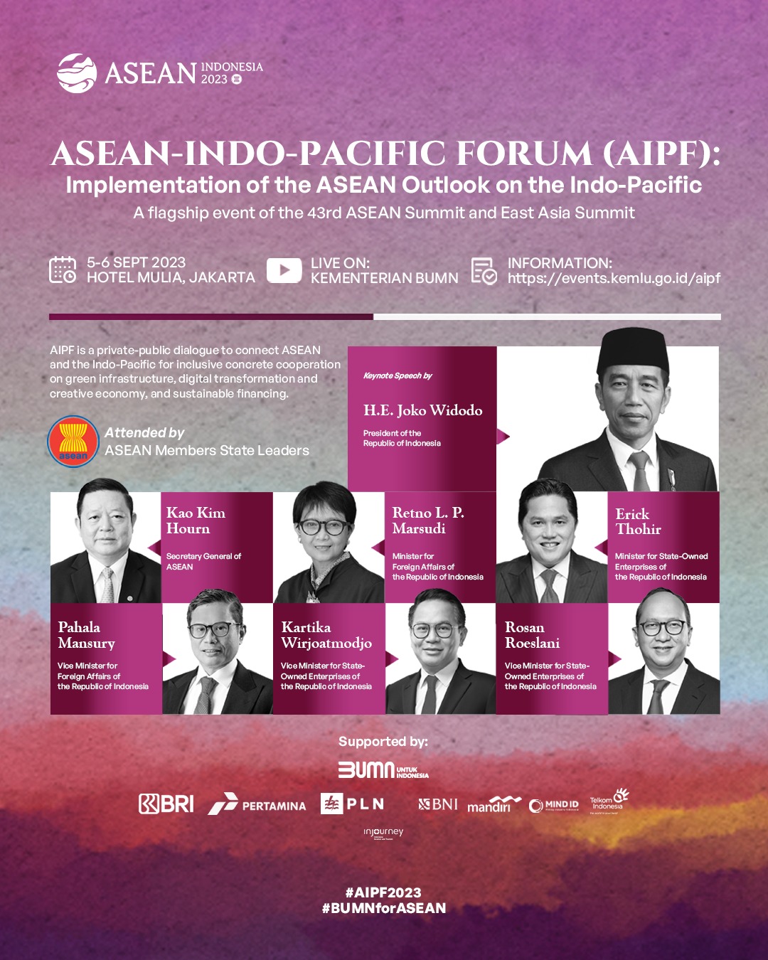 AIPF will be joined by several heads of state/government as keynote speakers, while various panel discussions and talk shows will host leaders of private and public sectors, including state-owned enterprises in ASEAN and the Indo-Pacific.