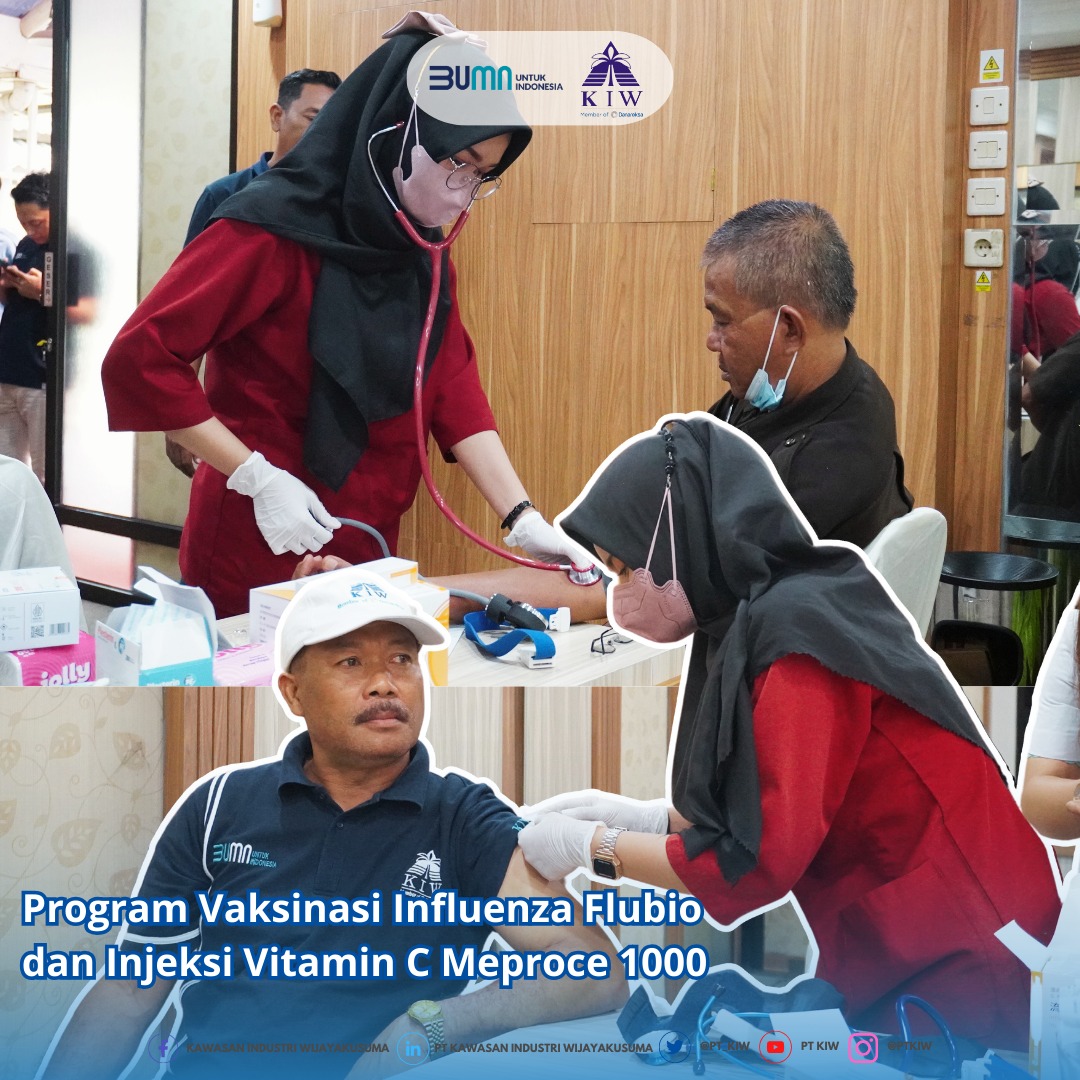 PT Kawasan Industri Wijayakusuma (KIW) terus berkomitmen untuk menjaga kesehatan dan kesejahteraan seluruh manajemen dan karyawan. Pada tanggal 22 Desember dan 28 Desember 2023, KIW melaksanakan program Vaksinasi Influenza Flubio bersamaan dengan injeksi Vitamin C Meproce 1000.