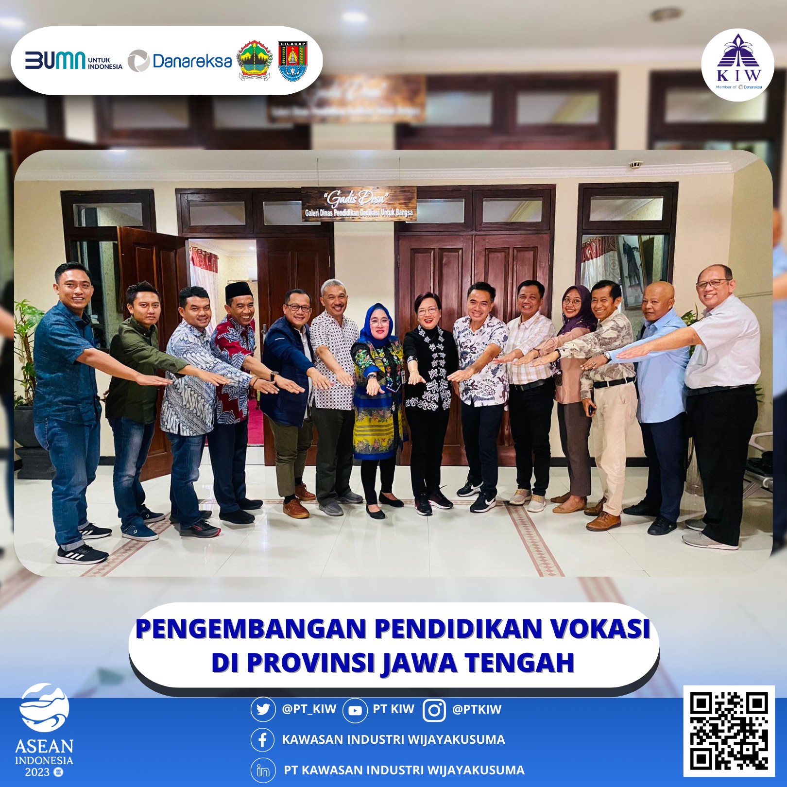 PT Kawasan Industri Wijayakusuma (KIW), sebagai pengembang dan pengelola kawasan industri yang juga merupakan anggota Himpunan Kawasan Industri (HKI) Jawa Tengah, telah diundang dan menghadiri rapat dengan Dinas Pendidikan dan Kebudayaan Jawa Tengah pada Jumat, 26 Mei 2023. Rapat ini bertujuan untuk membahas Pengembangan Pendidikan Vokasi di Jawa Tengah, dan diselenggarakan di Kantor Dinas Pendidikan dan Kebudayaan yang terletak di Jalan Pemuda, Kota Semarang.