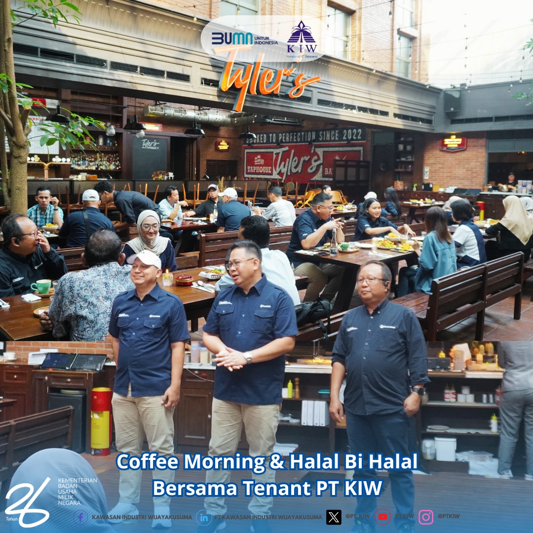 Selasa, tanggal 23 April 2024, suasana hangat dan penuh keceriaan memenuhi ruangan saat PT Kawasan Industri Wijayakusuma (KIW) menggelar acara Coffee Morning dan Halal Bi Halal bersama para Tenant di Eastman Coffee House Semarang. Acara ini diselenggarakan bertujuan untuk mempererat hubungan baik antara perusahaan dan para Tenant yang menjadi bagian integral dari lingkungan industri yang dinamis di KIW.