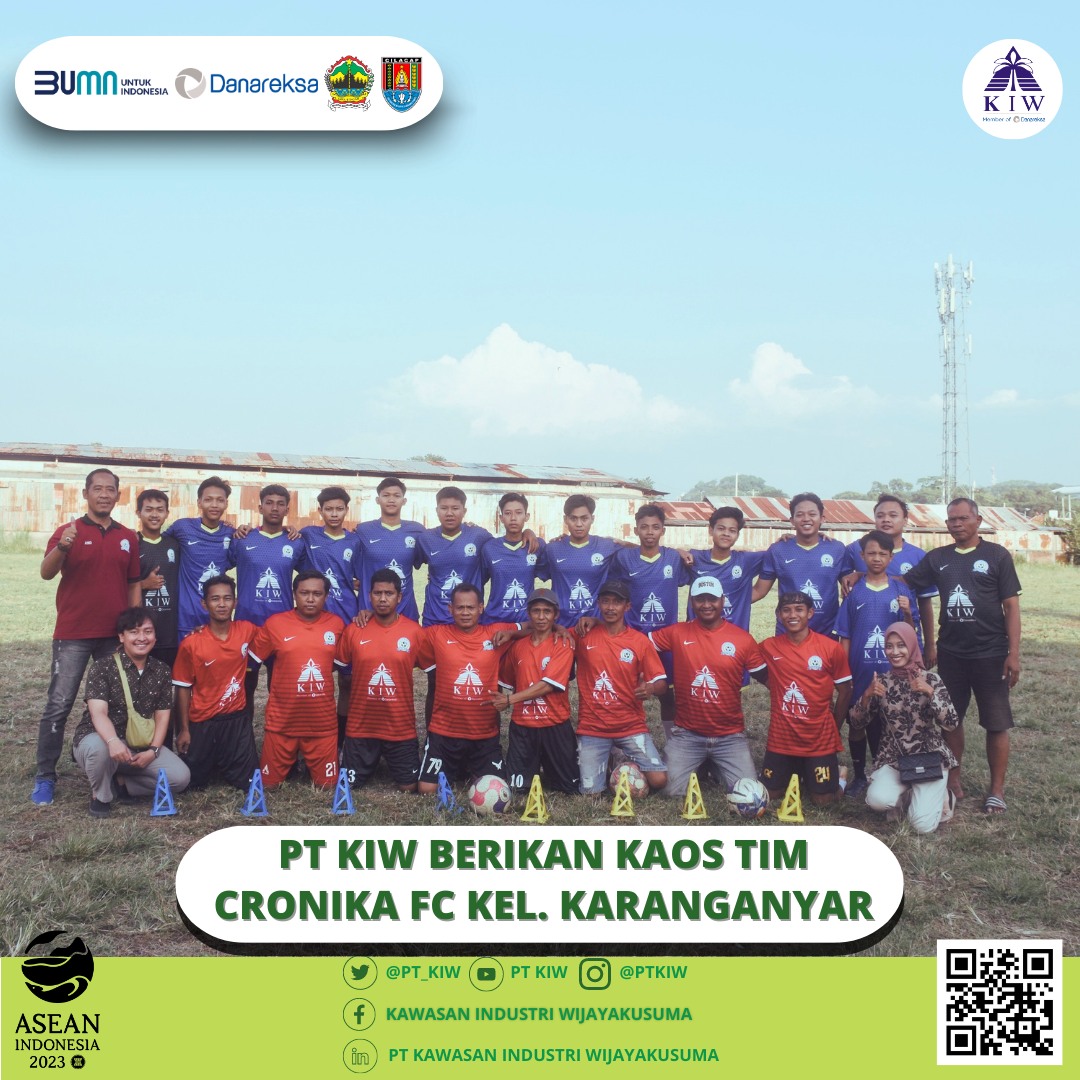 PT Kawasan Industri Wijayakusuma (KIW) menunjukkan komitmennya dalam mendukung olahraga lokal dengan memberikan dukungan penuh kepada tim sepakbola Kelurahan Karanganyar Cronika FC. PT KIW menyerahkan secara resmi kaos tim sepak bola kepada para pemain dan pelatih, sebagai simbol kolaborasi dan semangat kebersamaan.