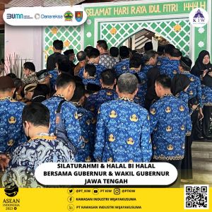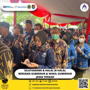 PT Kawasan Industri Wijayakusuma (KIW) yang diwakili oleh Head of Corporate Secretary, Ibu Kuniyanti dan tim, menghadiri acara silaturahmi dengan Gubernur Jawa Tengah Bapak H. Ganjar Pranowo, S.H, M.IP dan Wakil Gubernur Jawa Tengah Bapak H. Taj Yasin Maimoen setelah momen Idul Fitri 1444 H. Kegiatan silaturahmi ini dilaksanakan pada hari Selasa, tanggal 02 Mei 2023, bertempat di Kantor Gubernur Jawa Tengah. Acara ini dihadiri oleh sejumlah tamu undangan, termasuk seluruh Bupati/Walikota Jawa Tengah, pimpinan OPD Provinsi Jawa Tengah (pejabat struktural/setara), tokoh lintas agama, rektor PTN/PTS, pimpinan BUMN/BUMD, serta pimpinan instansi vertikal.