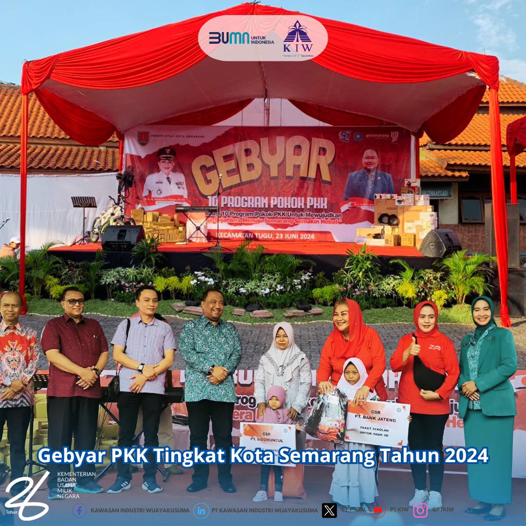 Tim TJSL PT Kawasan Industri Wijayakusuma (KIW) kembali menunjukkan komitmennya dalam mendukung masyarakat sekitar. Kali ini, PT KIW turut berpartisipasi dalam acara Gebyar PKK Tingkat Kota Semarang Tahun 2024, yang diselenggarakan di Lapangan Sepakbola DLH, Kecamatan Tugu, Kota Semarang.