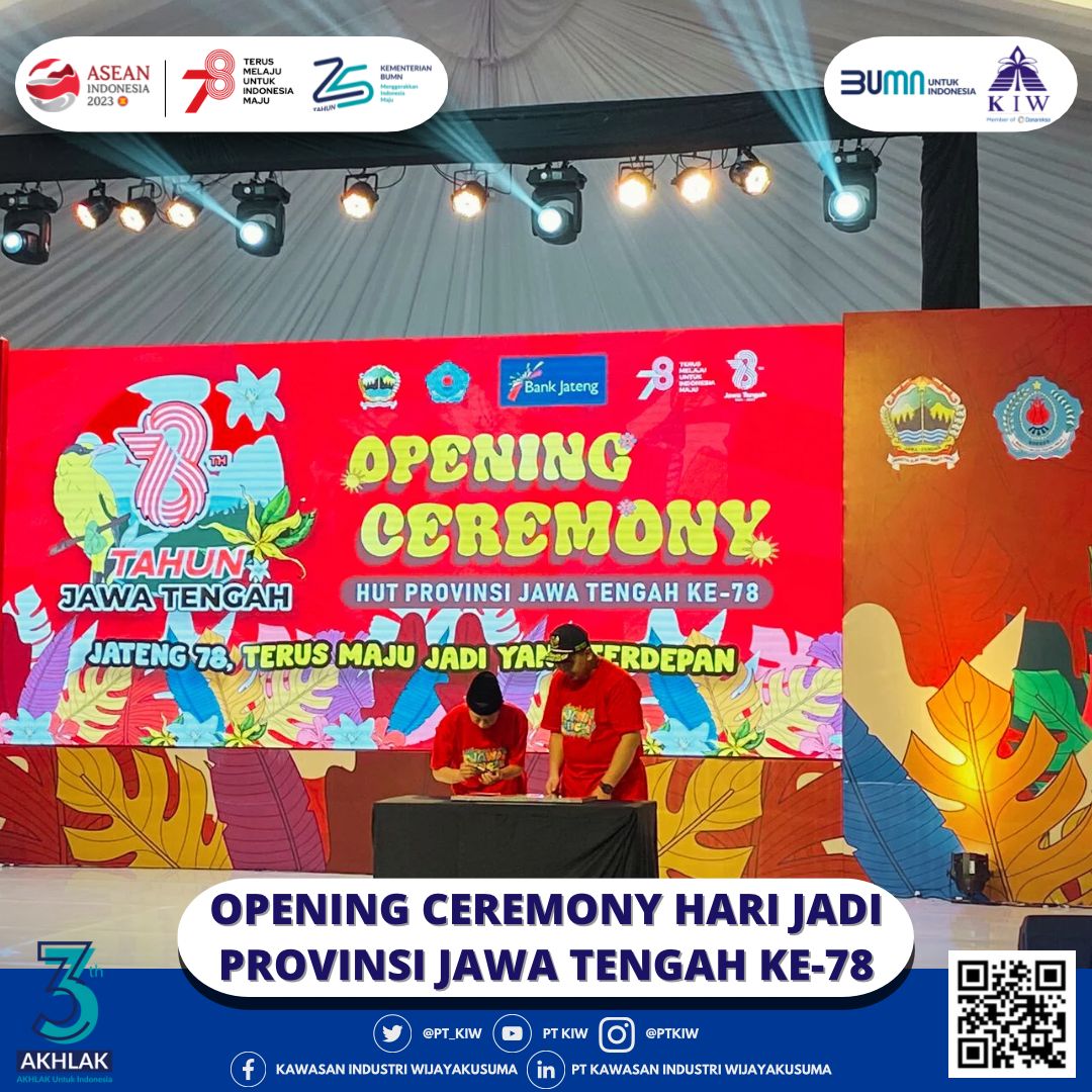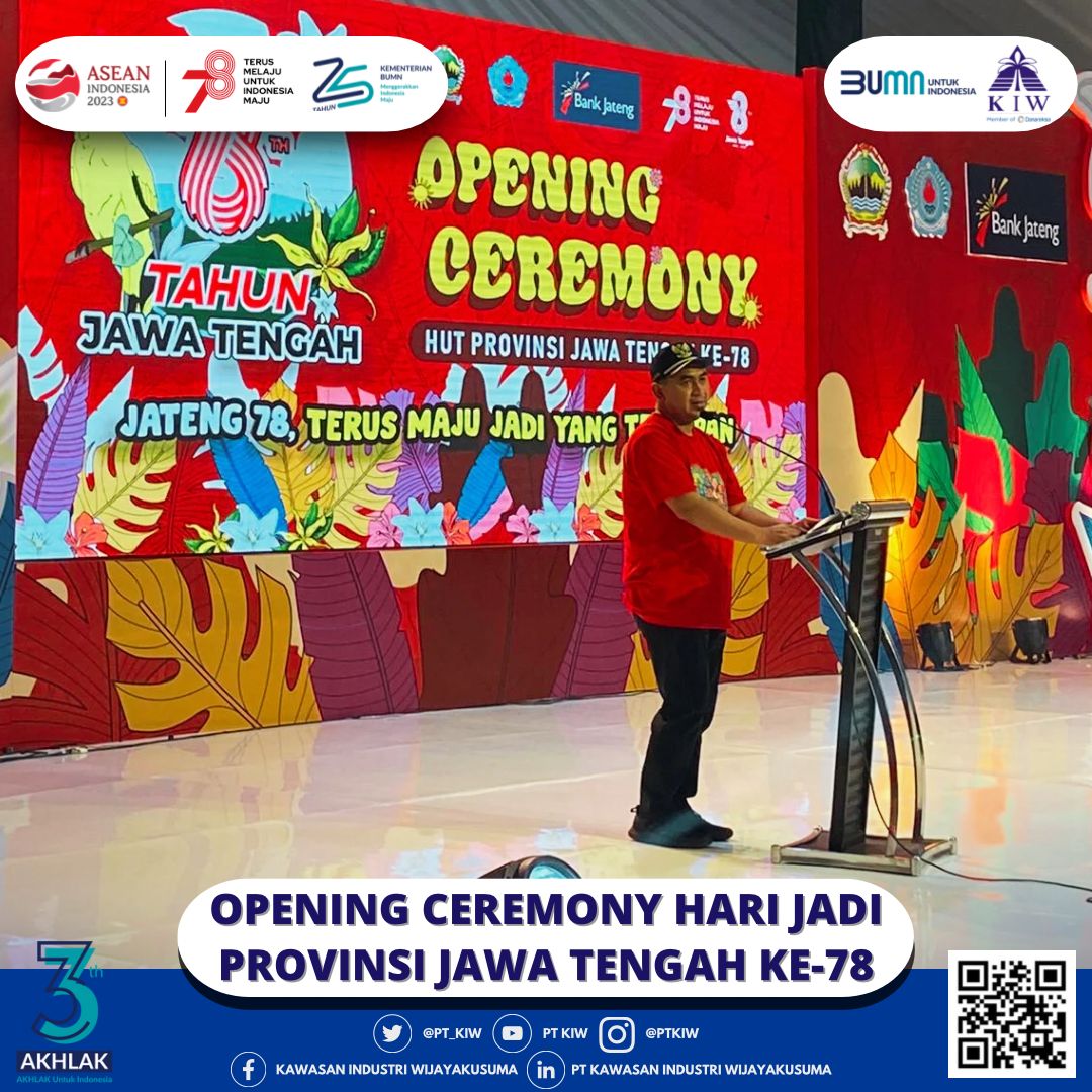 Pada Jum'at, 18 Agustus 2023, suasana kebahagiaan dan semangat bersatu terpancar di Lapangan Timur GOR Sasana Adhi Karsa, Brebes, Jawa Tengah, saat acara pembukaan peringatan Hari Jadi Provinsi Jawa Tengah ke-78 digelar dengan meriah. Acara ini dibuka secara resmi oleh Wakil Gubernur Provinsi Jawa Tengah, Bapak H. Taj Yasin Maimoen. PT Kawasan Industri Wijayakusuma (KIW) hadir dalam rangkaian kegiatan tersebut.