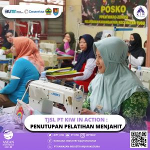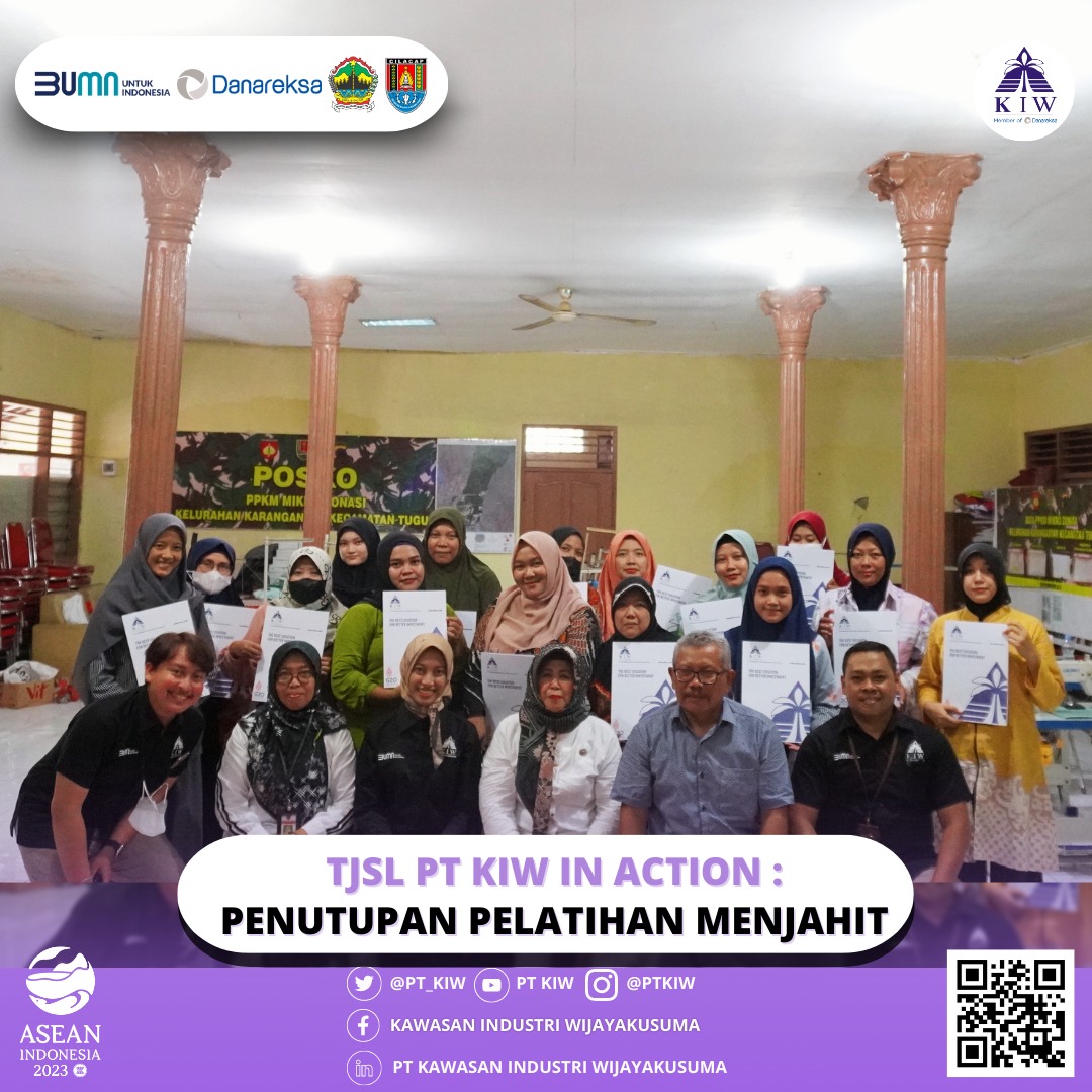 PT Kawasan Industri Wijayakusuma (KIW) mengadakan acara penutupan pelatihan menjahit di Balai Pertemuan Kelurahan Karanganyar, Kecamatan Tugu, Kota Semarang pada tanggal 21 Juni 2023. Pelatihan ini merupakan salah satu program kerja PT KIW dalam pilar ekonomi, tepatnya TPB 8 (Pekerjaan Layak dan Pertumbuhan Ekonomi). Kegiatan pelatihan ini telah dimulai sejak tanggal 29 Mei 2023 dan menjadi kolaborasi antara PT KIW dan LPK Bina Mulia sebagai mitra binaan.