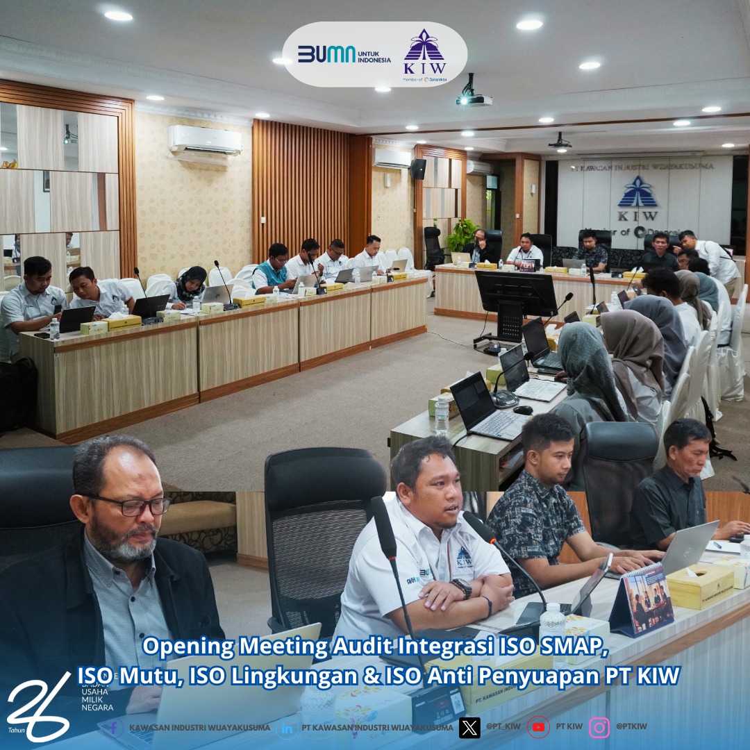 PT Kawasan Industri Wijayakusuma (KIW) telah menggelar acara Opening Meeting Audit Integrasi ISO SMAP, ISO Mutu, dan ISO Lingkungan untuk tahun 2024. Acara ini dilaksanakan di ruang rapat PT KIW pada hari Senin, 8 Juli 2024.