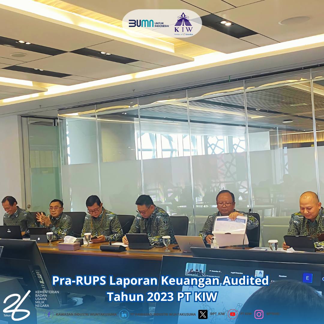 PT Kawasan Industri Wijayakusuma melaksanakan Pra-Rapat Umum Pemegang Saham (Pra-RUPS) untuk pengesahan laporan keuangan audited tahun buku 2023. Rapat ini dilaksanakan pada hari Rabu, 19 Juni 2024 bertempat di Menara Danareksa Ruang Rapat lantai 21, Jakarta, yang dihadiri oleh Pemegang Saham PT Danareksa (Persero), Provinsi Jawa Tengah dan Kabupaten Cilacap, Dewan Komisaris dan Direksi serta Manajemen PT KIW.