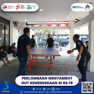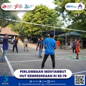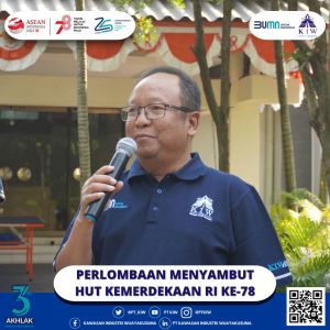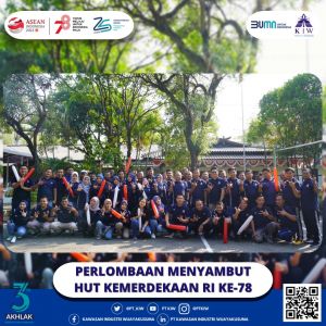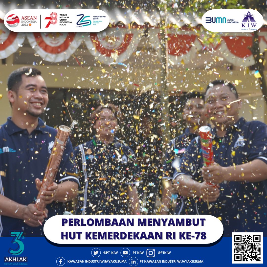 Dalam semangat memeriahkan peringatan Hari Kemerdekaan Republik Indonesia yang ke-78 dengan tema “Terus Melaju Untuk Indonesia Majuâ€, PT Kawasan Industri Wijayakusuma (KIW) menggelar beragam perlombaan seru. Acara perlombaan yang digelar pada Jum’at, tanggal 04 Agustus 2023 ini berhasil menyatukan seluruh manajemen perusahaan dari berbagai Direktorat dan Divisi dalam sebuah rangkaian kegiatan yang meriah.