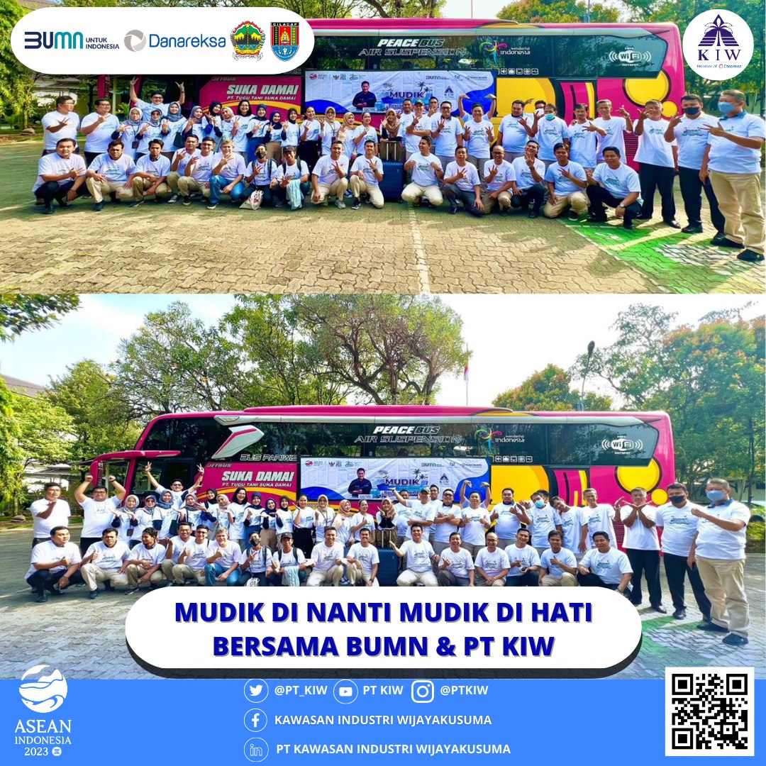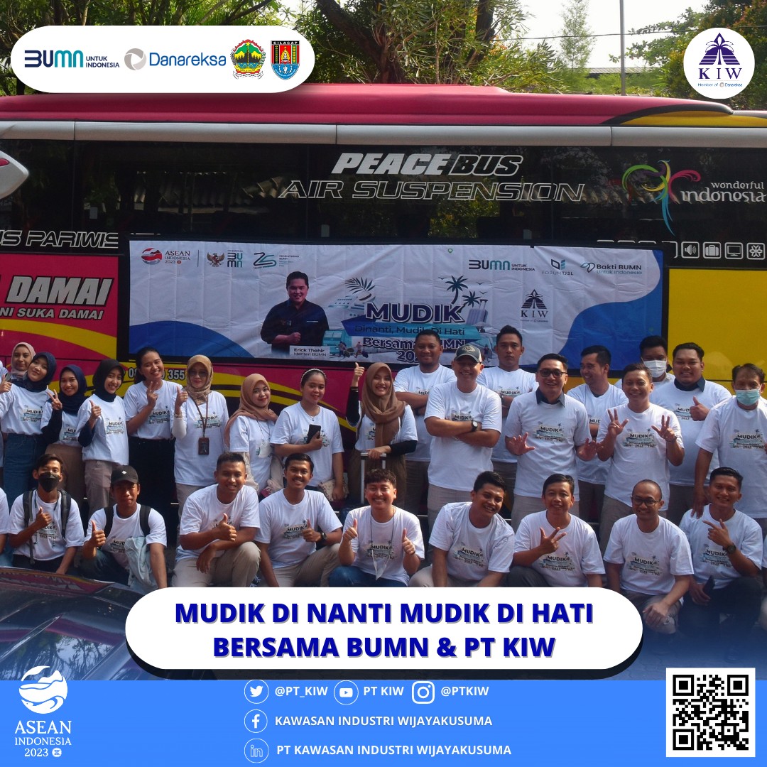 PT Kawasan Industri Wijayakusuma (KIW) telah melaksanakan kegiatan "Mudik Dinanti Mudik Di Hati Bersama BUMN" pada hari Selasa tanggal 18 April 2023. Kegiatan ini bertujuan untuk memberangkatkan para peserta mudik secara gratis menggunakan moda transportasi bus dengan tujuan Semarang-Solo-Sragen-Madiun-Nganjuk-Mojokerjo-Surabaya.