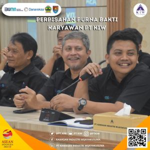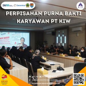 PT Kawasan Industri Wijayakusuma (KIW) mengadakan acara "Perpisahan Purna Bakti Karyawan" untuk menghormati dan mengucapkan terima kasih kepada Bapak Pratiknya dan Bapak Saino yang telah resmi pensiun dari perusahaan. Acara ini dilaksanakan pada hari Rabu tanggal 1 Maret 2023 bertempat di Ruang Rapat PT KIW.
